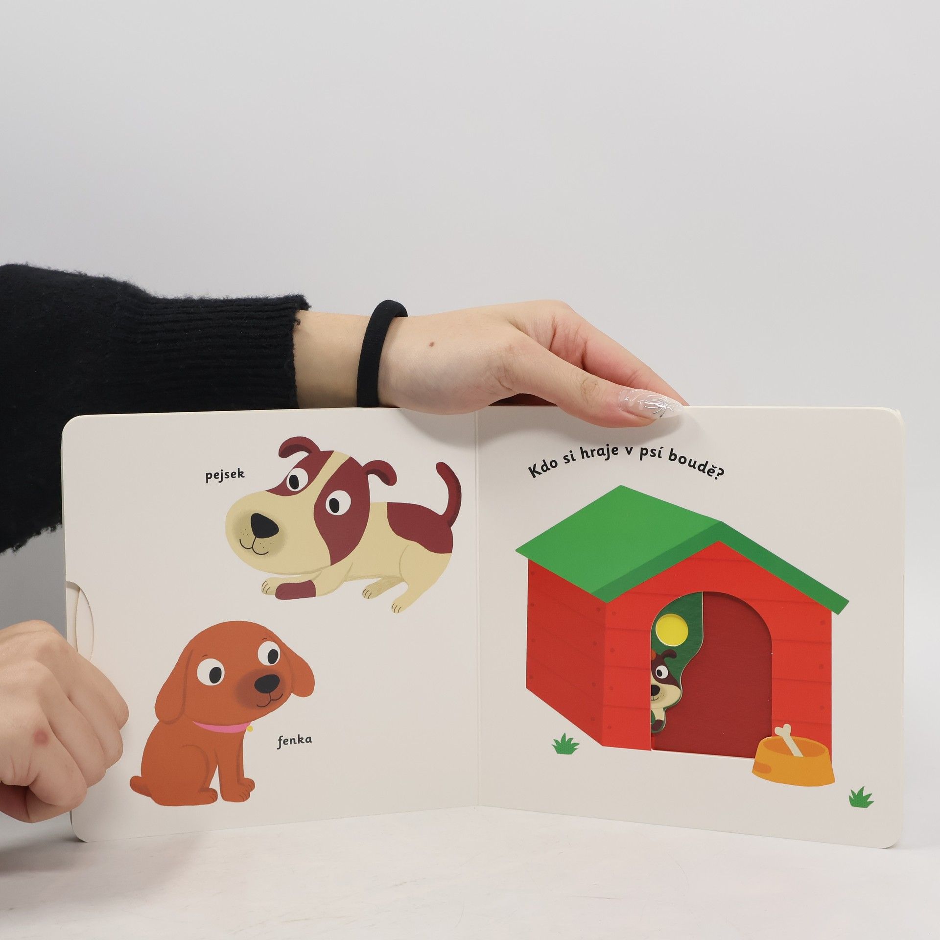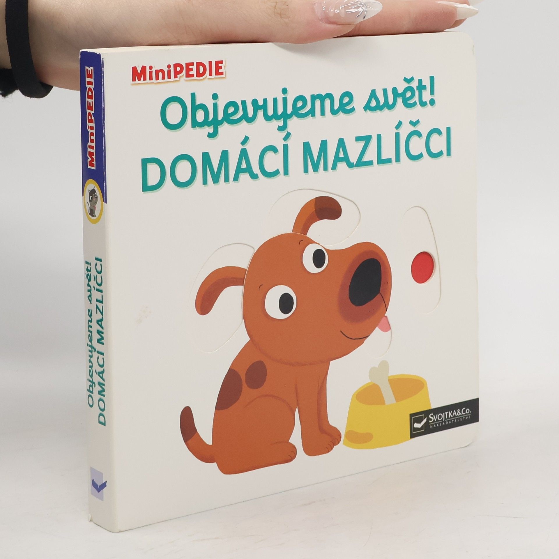 Objevovat svět zvířátek a domácích mazlíčků je s tímto leporelem tak zábavné! Kdo si hraje s klubíčkem vlny? Kdo žije v tomto akváriu? Kdo si hraje v psí boudě? Kdo běhá v kolečku? Pojmenuj zvířátka a ukaž, které máš nejraději! Stačí jen vložit prstík do správného otvoru, lehce posunout nebo otočit ve směru šipky a hned bude váš malý objevitel nebo objevitelka znát odpovědi. Leporelo je určeno pro nejmenší děti od jednoho roku a má pevné stránky s posuvnými prvky, a tak si naši nejmenší mohou při prohlížení a pojmenovávání procvičit i jemnou motoriku.