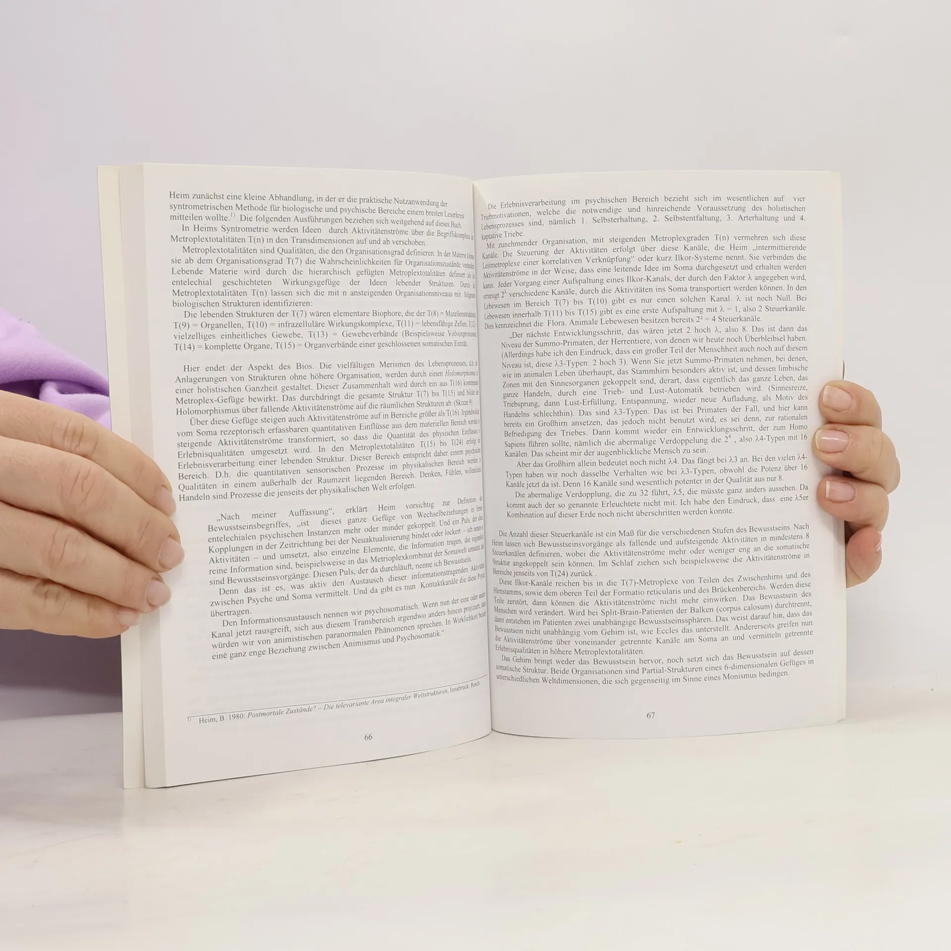 Heim vollendet Einsteins Ansätze zu einer einheitlichen Feldtheorie. Er geometrisiert nicht nur das Gravitationsfeld, sondern sämtliche physikalischen Felder. In Heims Theorie lassen sich alle Elementarteilchen als dynamische, quantisierte geometrische Strukturen angeben. Die Massen der Elementarteilchen werden sehr genau wiedergegeben, was bisher weder die String, noch die Loop-Quanten-Theorie können! Ein Urknall findet im kosmologischen Modell Heims nicht statt. Der Kosmos entwickelte sich nach Heim sehr, sehr lange nur als ein leerer Raum als reine quantisierte Geometrie. Durch die Einführung einer aspektbezogenen Logik gelingt in Heims 6-dimensionalem Weltbild die einheitliche Beschreibung physikalischer, biologischer und psychischer Prozesse und somit die Lösung des Leib-Seele Problems. Das Buch will auf die Bedeutung, die das neue moderne Weltbild für jeden Einzelnen von uns hat, aufmerksam machen. Es zeichnet ein hoffungsvolleres und sinnvolleres Bild des Daseins als es nur die Raumzeit vermag.