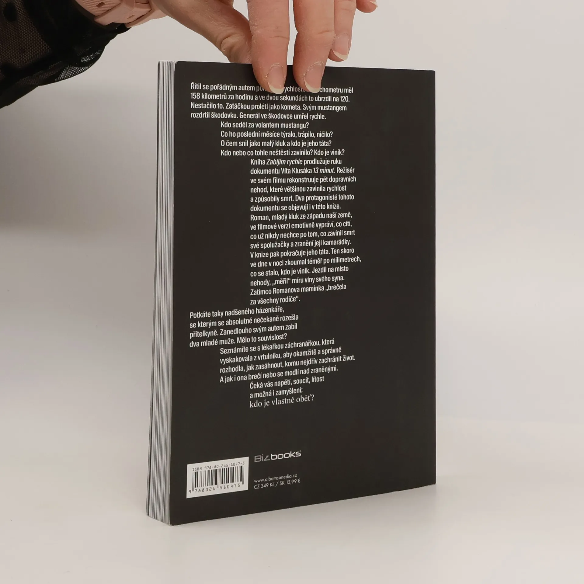 Popisuje okamžik, kdy motor auta, které řídili, ztichl. Řídil rychlostí 158 km/h, ale nestačilo to. Zatáčkou prolétl jako kometa a svým mustangem rozdrtil škodovku, ve které generál zemřel. Kdo byl za volantem mustanga a co ho trápilo? Kniha prodlužuje dokument Víta Klusáka 13 minut, který rekonstruuje pět smrtelných nehod způsobených rychlostí. Dva protagonisté se objevují i v knize. Roman, mladík, který zavinil smrt spolužačky, emotivně vypráví o svých pocitech, zatímco jeho otec zkoumá místo nehody a měří vinu svého syna. Potkáte také házenkáře, který po rozchodu zabil dva mladé muže. Seznámíte se s lékařkou-záchranářkou, která rozhoduje, jak zasáhnout, a prožívá silné emoce. Čeká vás napětí, soucit a zamyšlení nad tím, kdo je vlastně oběť. Roman vzpomíná na šok po nehodě, Tomáš popisuje ticho po srážce s cyklistou, a Michal se potýká s psychickou újmou po nehodě, při níž zemřeli dva bratři. Lucie, advokátka, se zotavuje po nehodě, kdy do ní narazila dodávka. Martin, jehož nehoda byla kvalifikována jako pokus o vraždu, vyjadřuje lítost nad obětí. Kniha zkoumá důsledky tragédií a otázky viny a oběti.