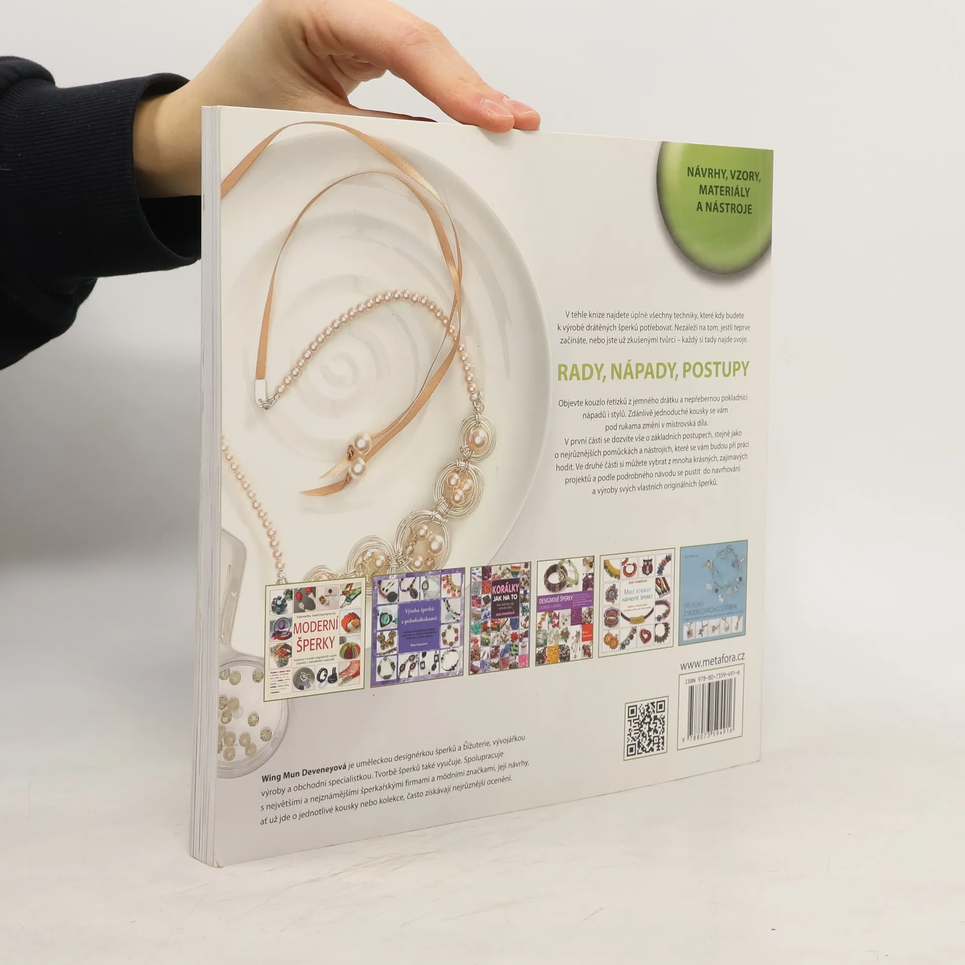 Objevte kouzlo jemných drátěných šperků… průvodce základními i pokročilými technikami, s projekty a předlohami. V téhle knize najdete úplně všechny techniky, které kdy budete k výrobě drátěných šperků potřebovat. Nezáleží na tom, jestli teprve začínáte, nebo jste už zkušenými tvůrci – každý si tady najde svoje. Objevte kouzlo řetízků z jemného drátku a nepřebernou pokladnici nápadů i stylů. Zdánlivě jednoduché kousky se vám pod rukama změní v mistrovská díla. V první části se dozvíte vše o základních postupech, stejně jako o nejrůznějších pomůckách a nástrojích, které se vám budou při práci hodit. Ve druhé části si můžete vybrat z mnoha krásných, zajímavých projektů a podle podrobného návodu se pustit do výroby. A pak už vám nic nebrání, abyste se pustili do navrhování a tvorby svých vlastních originálních šperků.