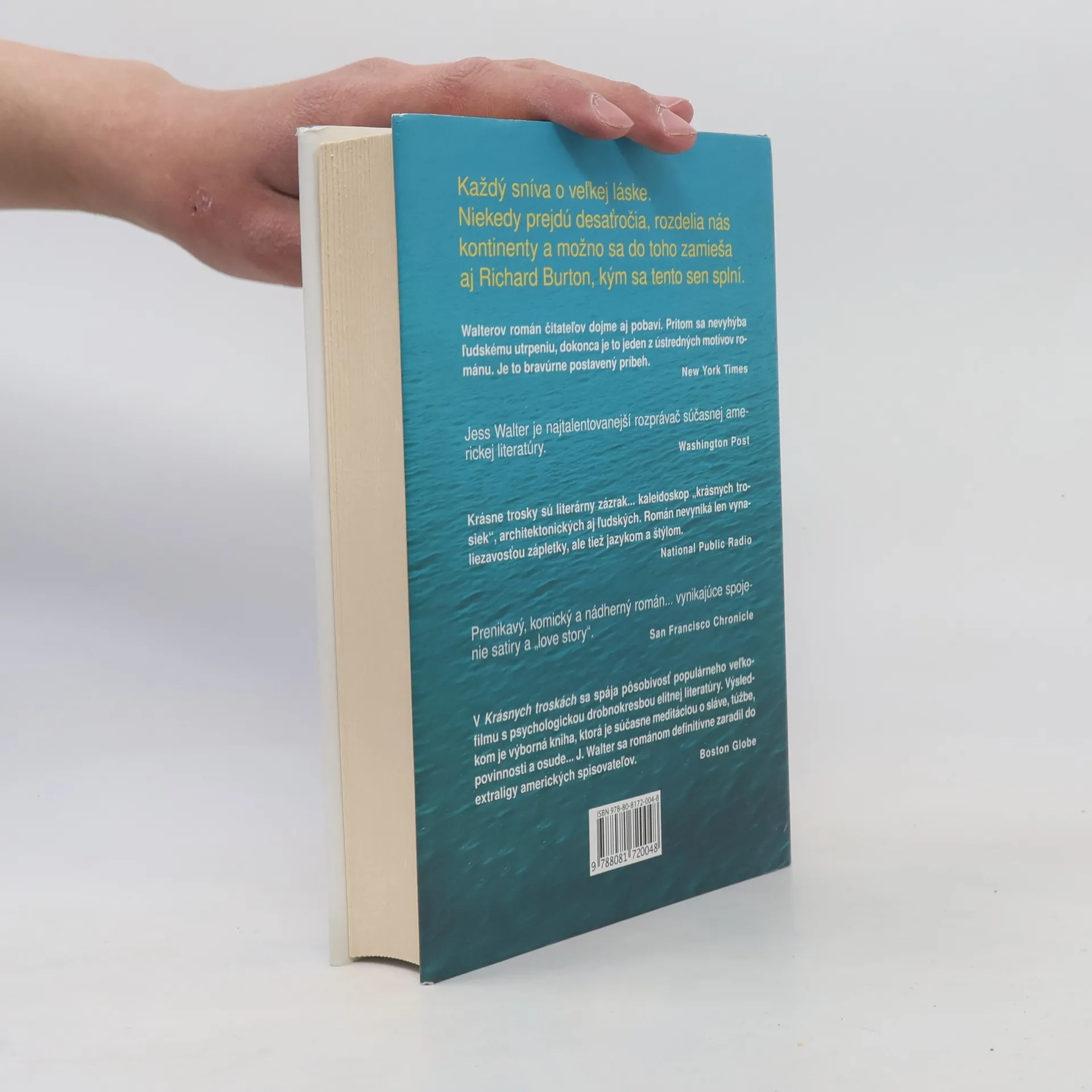 Rok 1962. V rybárskej dedinke na pobreží Ligúrskeho mora žije mladý Talian Pasquale so svojou matkou a hašterivou tetou. Dedičstvo po otcovi, chátrajúci hotel a azúrové oči, ho vedú k snu o turistickej destinácii pre Američanov. Jedného dňa do zátoky dorazí loď s americkou herečkou, ktorá sa cíti na pokraji smrti. Pasquale, očarený jej krásou, sa snaží zabezpečiť jej pohodlie a dokonca cestuje do Ríma, aby presvedčil muža, ktorý ju opustil, aby sa o ňu postaral. S herečkou prichádza do Porto Vergogna nový život a večne pijúci Richard Burton. O päťdesiat rokov neskôr sa v Hollywoode objaví starý Talian, ktorý pátra po tajomnej žene. Jess Walter majstrovsky prepletá osudy nezabudnuteľných postáv: romantického Pasqualea, sklamanej herečky Dee Moray, filmového producenta bojujúceho so starobou, jeho mladú asistentku, vojnového veterána píšuceho neexistujúci román a Richarda Burtona, ktorý opúšťa svoje filmové lásky. Ich cesty za snami ich obrali o ilúzie, až na konci zostali len „krásne trosky“. Walter patrí medzi popredných amerických spisovateľov, jeho dielo bolo preložené do 28 jazykov a získalo mnohé ocenenia vrátane Pulitzerovej ceny.