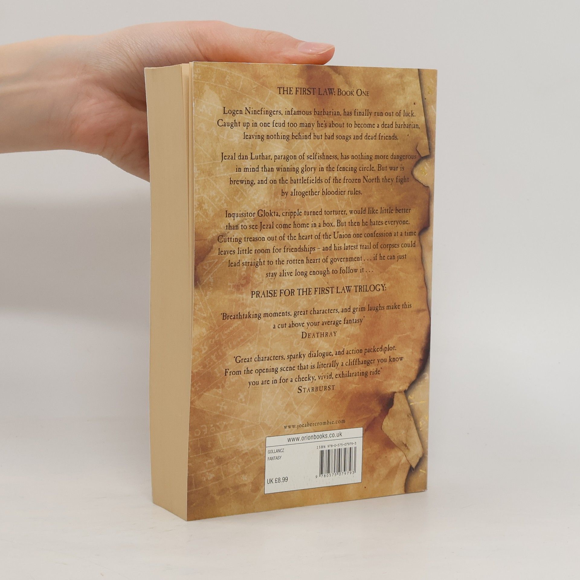Inquisitor Glokta, a crippled and increasingly bitter relic of the last war, former fencing champion turned torturer extraordinaire, is trapped in a twisted and broken body - not that he allows it to distract him from his daily routine of torturing smugglers. Nobleman, dashing officer and would-be fencing champion Captain Jezal dan Luthar is living a life of ease by cheating his friends at cards. Vain, shallow, selfish and self-obsessed, the biggest blot on his horizon is having to get out of bed in the morning to train with obsessive and boring old men. And Logen Ninefingers, an infamous warrior with a bloody past, is about to wake up in a hole in the snow with plans to settle a blood feud with Bethod, the new King of the Northmen, once and for all - ideally by running away from it. But as he's discovering, old habits die really, really hard indeed . . . . . . especially when Bayaz gets involved. A bald old man with a terrible temper and a pathetic assistant, he could be the First of the Magi, he could be a spectacular fraud, but whatever he is, he's about to make the lives of Glotka, Jezal and Logen a whole lot more difficult . . .