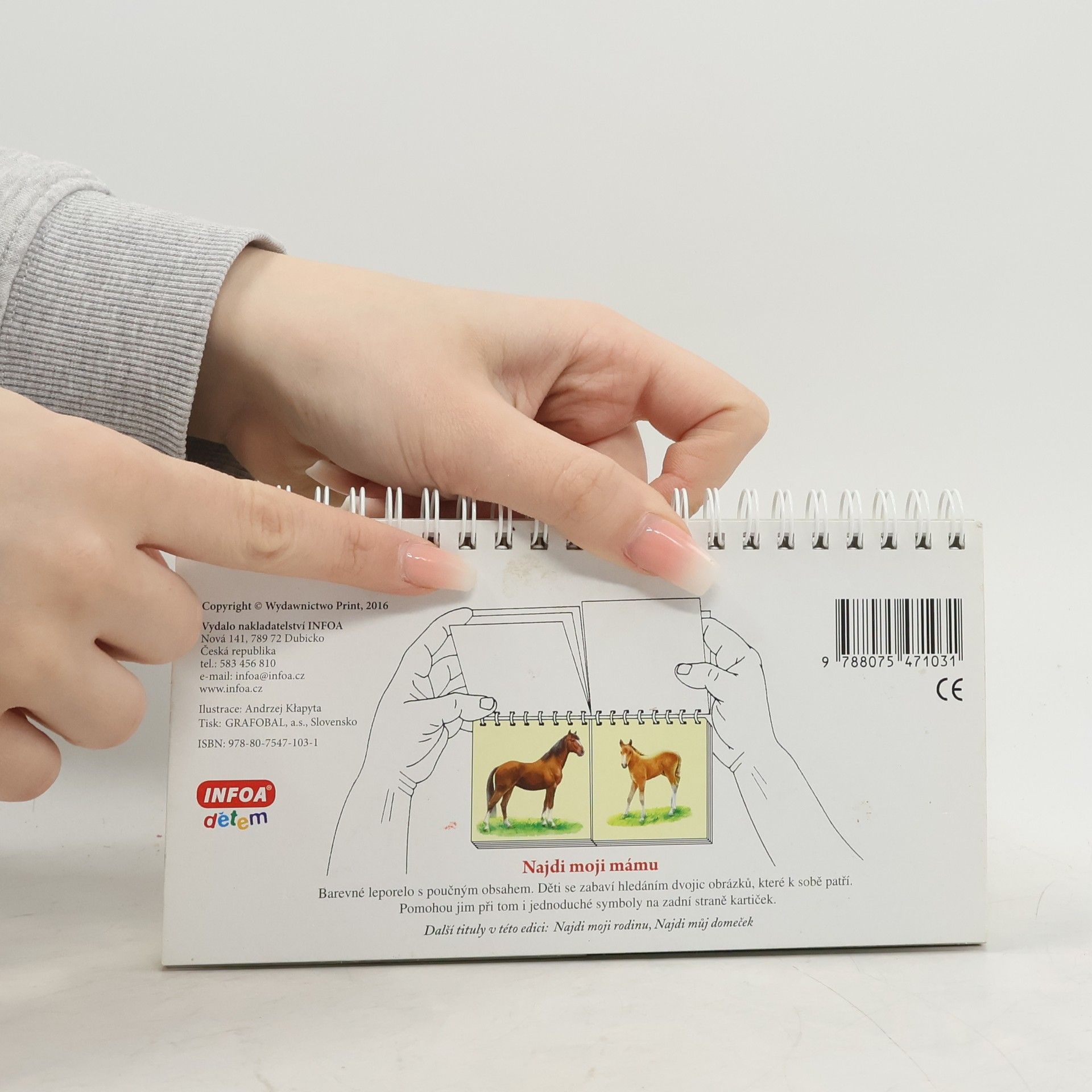 Barevné leporelo s poučným obsahem. Děti se zabaví hledáním dvojic obrázků, které k sobě patří. Pomohou jim při tom i jednoduché symboly na zadní straně kartiček.