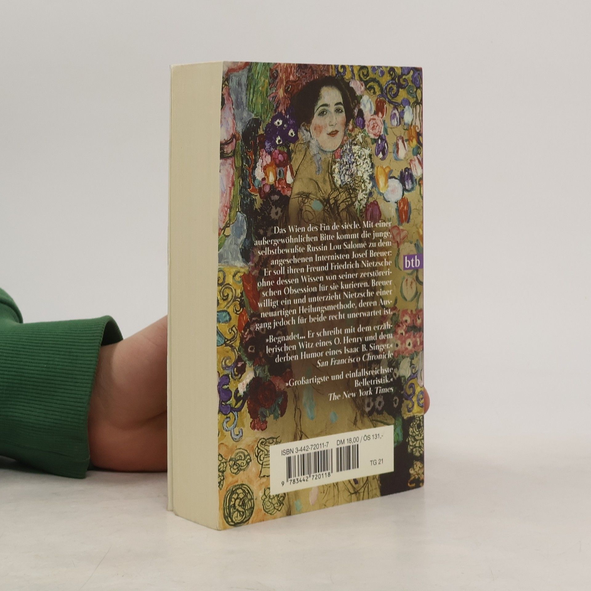 Das Wien des Fin de siècle. Die junge Russin Lou Salomé sucht Josef Breuer auf, den angesehenen Arzt und Mentor Sigmund Freuds. Sie macht sich Sorgen um ihren Freund Friedrich Nietzsche. Breuer soll den unter betäubenden Kopfschmerzen leidenden, einsamen großen Denker kurieren und von seiner Obsession für sie heilen. Doch Nietzsche darf nicht erfahren, dass Salomé Breuer gebeten hat, ihn zu behandeln. Breuer will ihn der neuartigen \"Redekur\" unterziehen, die er gerade mit seiner Patientin Anna O. entwickelt hat. Um Nietzsche zum Reden zu bewegen, beginnt er von seiner Obsession für die junge Patientin Bertha zu erzählen. So entspinnen sich zwischen dem ruhigen, einfühlsamen Breuer und dem verschlossenen, verletzlichen Nietzsche heftige Rededuelle. Und je näher sich die beiden kommen, umso deutlicher muss Breuer erkennen, dass er Nietzsche nur heilen kann, wenn er diesem erlaubt, auch ihm zu helfen. Yalom verwebt Fiktion und Wirklichkeit zu einem dichten Netz, und bald beginnen die großen Köpfe aus den Pioniertagen der Psychotherapie lebendig zu werden und zu uns zu sprechen.