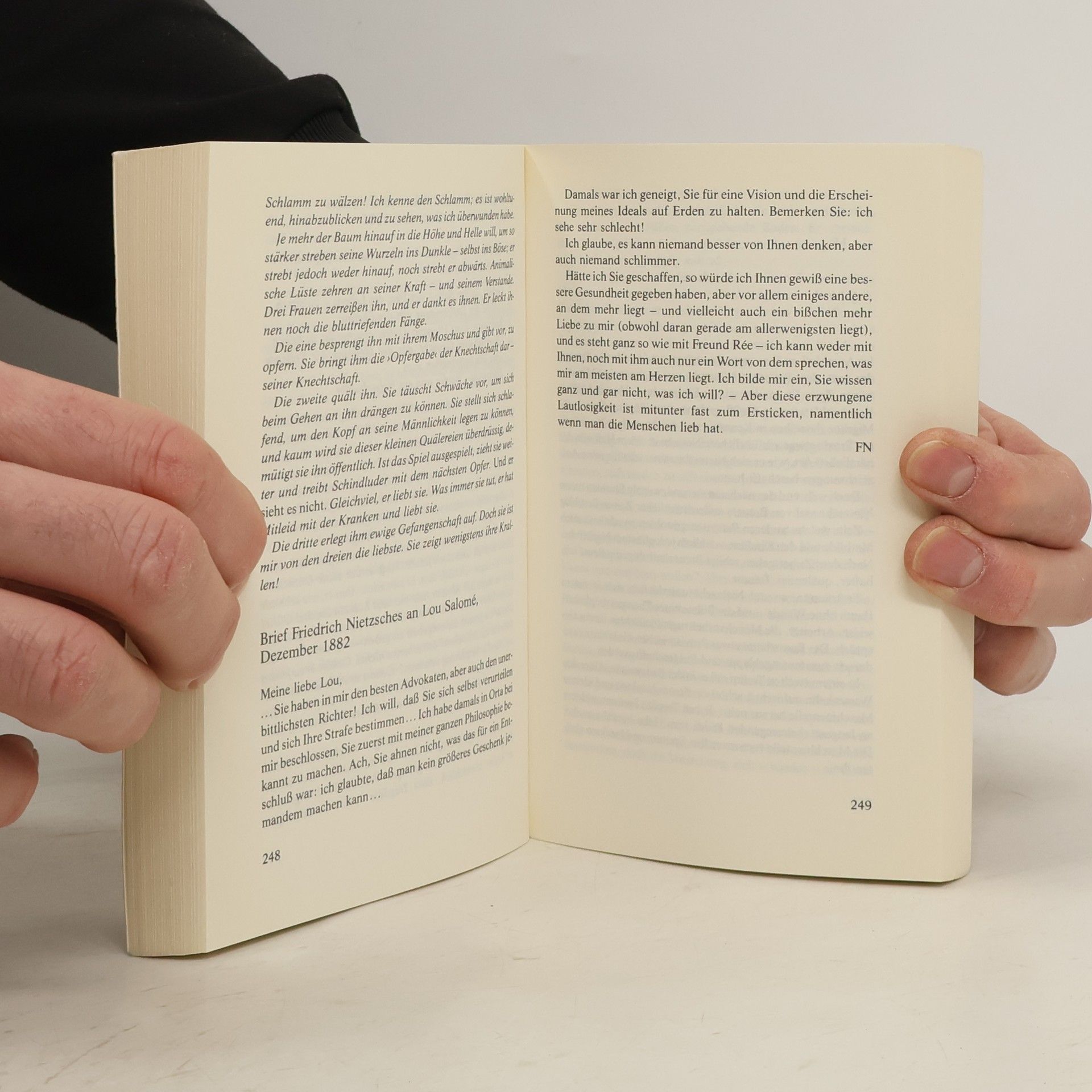 Eine Ménage à trois zwischen Lou Andreas Salomé, Nietzsche und der Psychoanalyse Das Wien des Fin de siècle: Die selbstbewusste junge Russin Lou Andreas Salomé drängt den angesehenen Arzt Josef Breuer, dem suizidgefährdeten Friedrich Nietzsche zu helfen und ihn von seiner zerstörerischen Obsession für sie zu kurieren. Breuer willigt ein und unterzieht Nietzsche einer neuartigen Heilungsmethode, deren Ausgang jedoch für beide unerwartet ist. Ausstattung: sechs s/w-Fotos