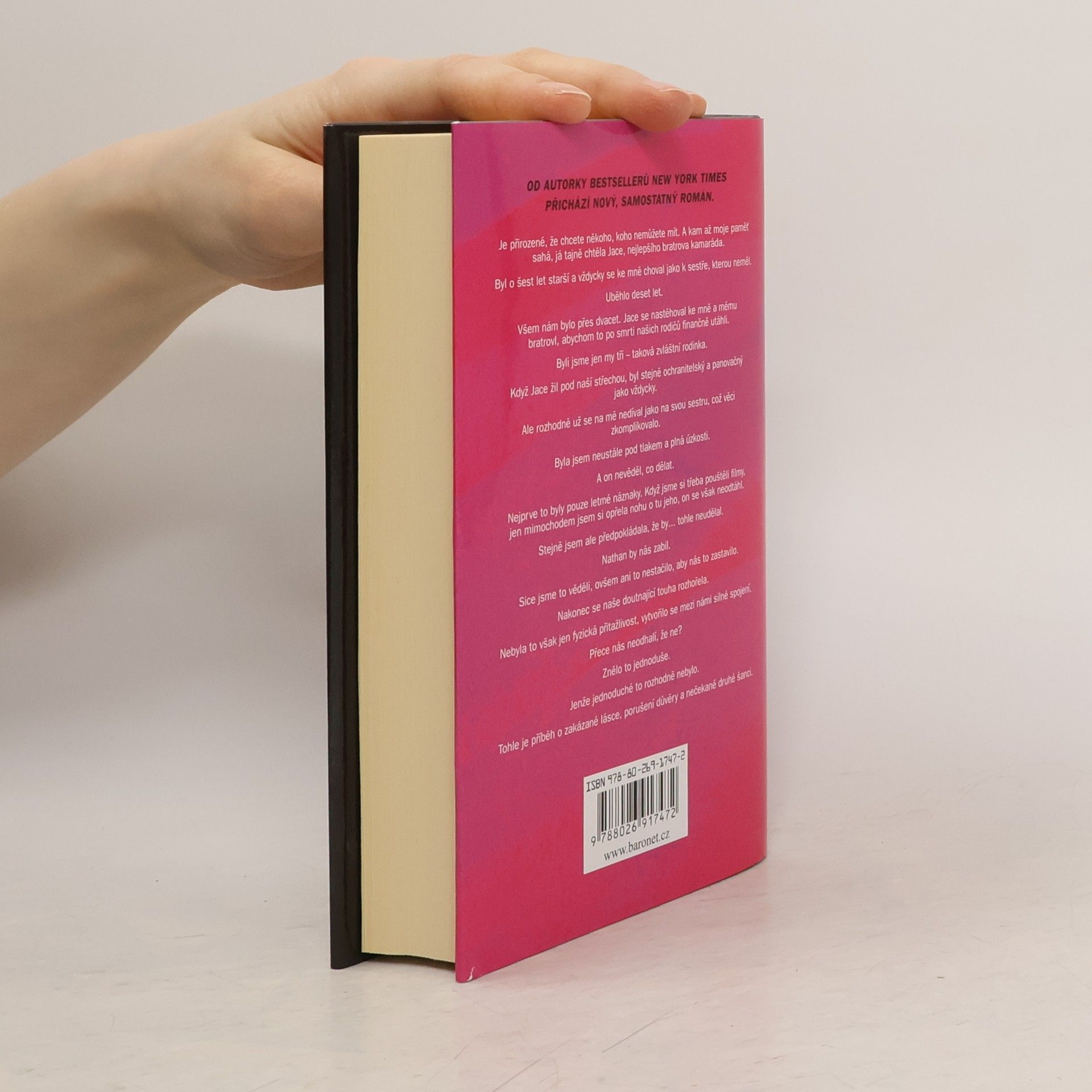 Od jedné z nejlépe prodávaných autorek New York Times Penelope Ward přichází nový samostatný příběh o zakázané lásce a druhé šanci… Je přirozené, že chcete někoho, koho nemůžete mít. A kam až moje paměť sahá, já tajně chtěla Jace, nejlepšího kamaráda mého bratra. Byl o šest let starší a vždycky se ke mně choval jako k sestře, kterou neměl. Uběhlo deset let. Všem nám bylo něco přes dvacet. Jace se nastěhoval ke mně a mému bratrovi, abychom vše po smrti našich rodičů finančně utáhli. Byli jsme jen my tři – taková zvláštní rodinná dynamika. Když Jace žil pod naší střechou, byl stejně ochranitelský a panovačný jako vždycky. Ale rozhodně už se na mě nedíval jako na svou sestru, což věci zkomplikovalo. Byla jsem neustále pod tlakem a plná úzkosti. A on nevěděl, co dělat. Nejprve to byly jenom letmé náznaky. Když jsme si třeba pouštěli filmy, jen mimochodem jsem si opřela nohu o tu jeho, on se však neodtáhl. Stejně jsem ale předpokládala, že by… tohle neudělal. Nathan by nás zabil. Sice jsme to věděli, ale ani to nestačilo, aby nás to zastavilo. Nakonec se naše doutnající touha rozhořela. Nebyla to ale jen fyzická přitažlivost, vybudovali jsme si silné napojení. Přece nás nechytí, že ne? Znělo to jednoduše. Jenže nebylo. Tohle je příběh o zakázané lásce, porušení důvěry a nečekané druhé šanci.