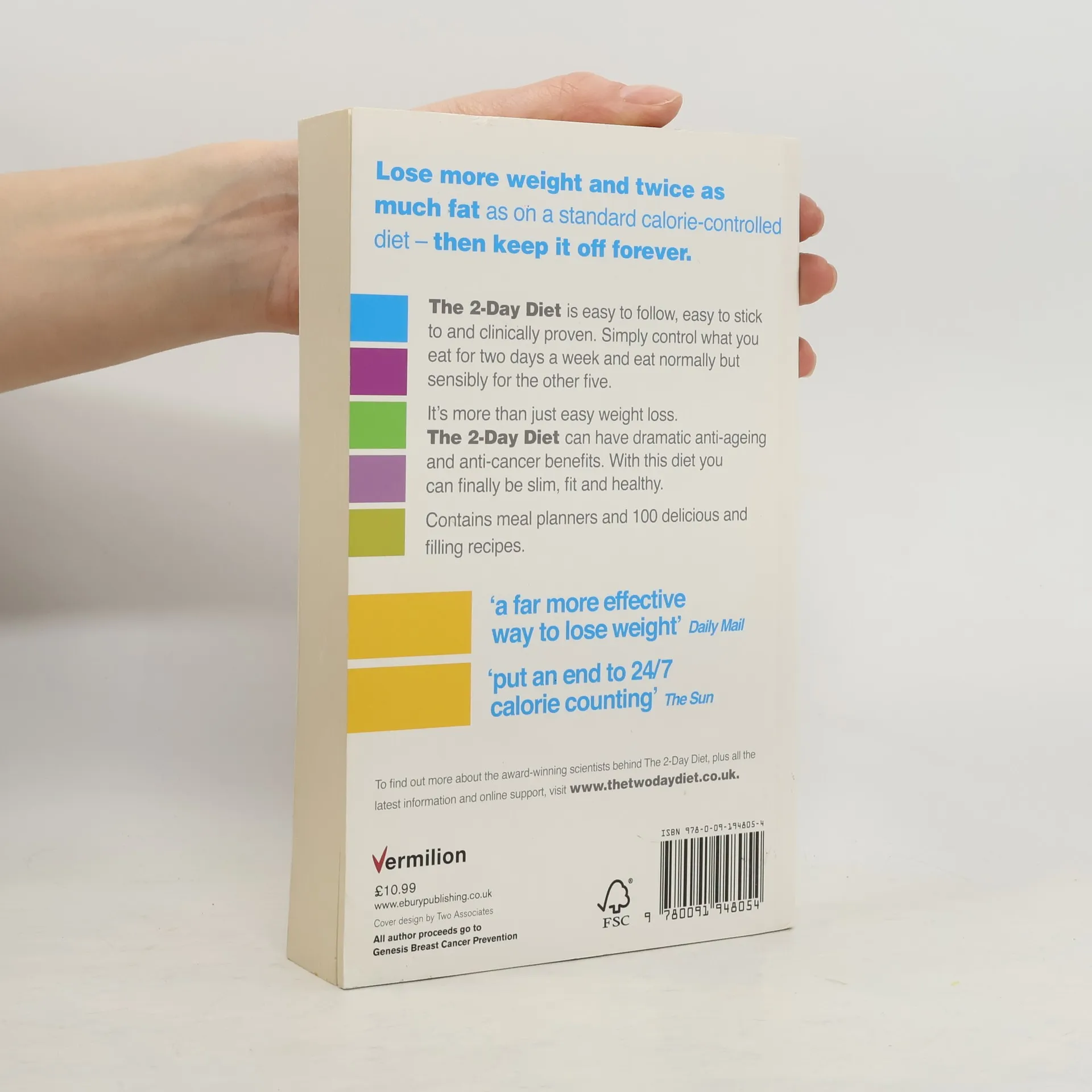 The 2-Day Diet is the original, clinically proven 5:2 diet to get you slim and healthy, as developed by acclaimed scientists Dr Michelle Harvie and Prof Tony Howell at Genesis Breast Cancer Prevention (all author proceeds go to this charity).
