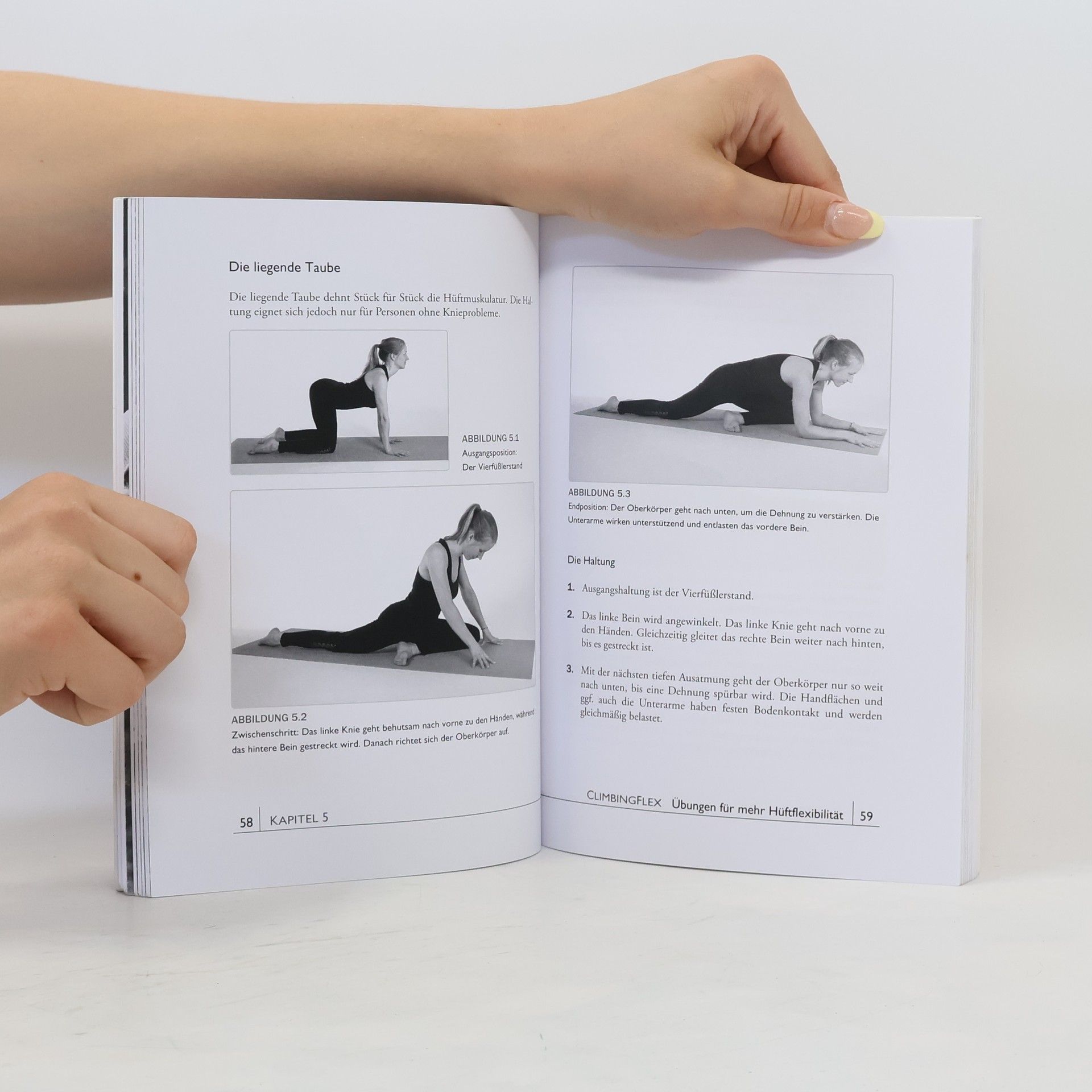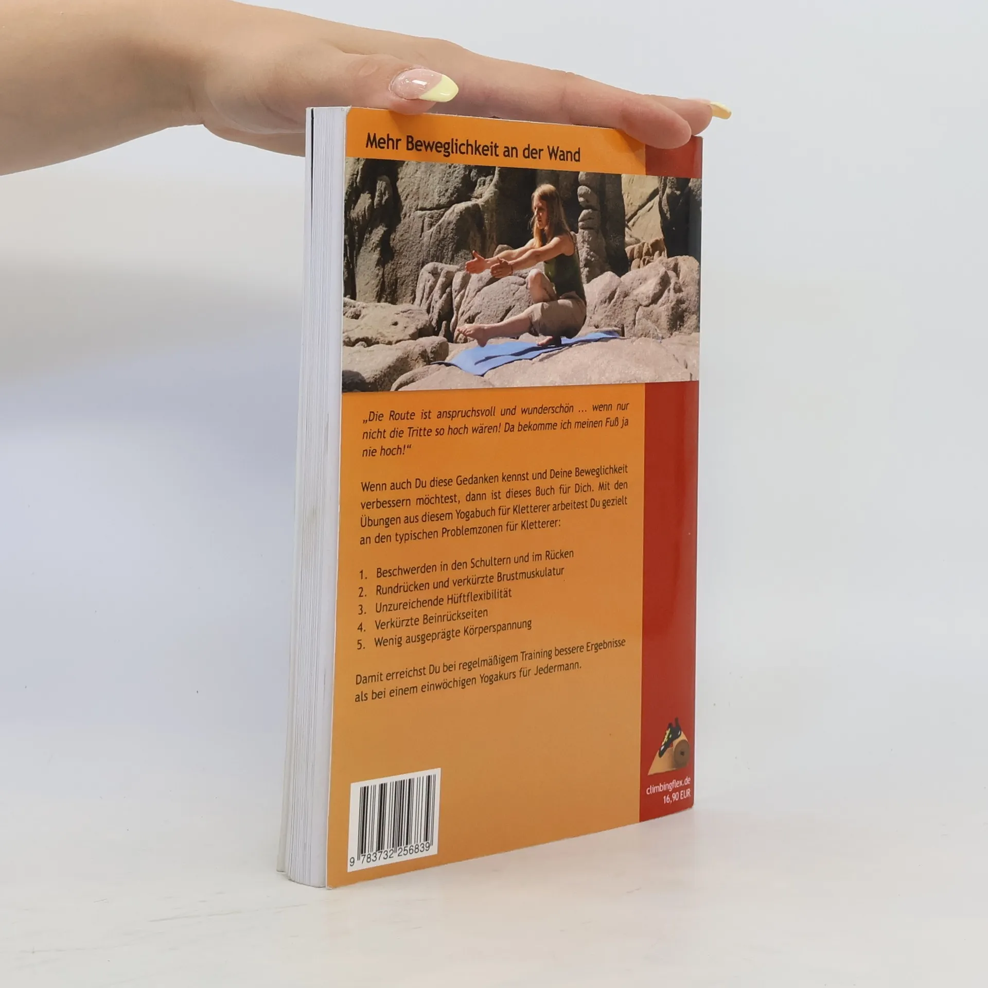 Yoga ist gleich Yoga ... oder doch nicht? Kaum eine Disziplin erfährt so unterschiedliche Reaktionen und Meinungen wie Yoga. Dennoch: Nicht nur in der breiten Bevölkerung, sondern auch in Sportarten, wie dem Sportklettern, ist Yoga immer mehr im Kommen. Yoga in unserer Gesellschaft richtet sich allerdings meistens an stressgeplagte Personen, die mit Yoga mehr Entspannung finden möchten, oder umgekehrt an Yoga-Praktizierende, die in ihrer Beweglichkeit sehr fortgeschritten sind. Kletterer dagegen stellen eine Gruppe dar, die gängige Yogaübungen oftmals als unangenehm empfinden und damit nicht ausreichend an kletterspezifischen Problemzonen arbeiten. In diesem Yogabuch für Kletterer wirst Du die folgenden fünf Übungsbereiche abdecken: - Schultern und Rücken - Brustkorbmuskulatur - Hüftflexibilität - Beinrückseiten - Deine Körperspannung Dieses Trainingsbuch mit meiner Methode wird Dir als Kletterer helfen, Deine Beweglichkeit zu verbessern und kontrollierter und geschmeidiger zu klettern.