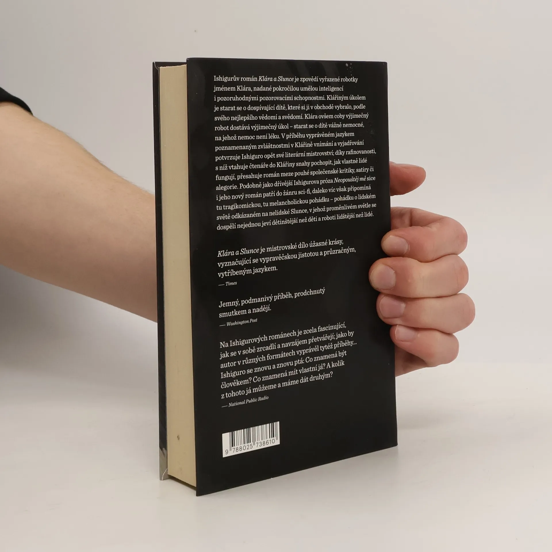 Román je zpovědí vyřazené robotky jménem Klára, nadané pokročilou umělou inteligencí i pozoruhodnými pozorovacími schopnostmi. Klářiným úkolem je starat se o dospívající dítě, které si ji v obchodě vybralo, podle svého nejlepšího vědomí a svědomí. Klára ovšem coby výjimečný robot dostává výjimečný úkol – starat se o dítě vážně nemocné, na jehož nemoc není lék. V příběhu vyprávěném jazykem poznamenaným zvláštnostmi v Klářině vnímání a vyjadřování skutečnosti potvrzuje Ishiguro opět své literární mistrovství. Díky rafinovanosti, s níž Ishiguro vtahuje čtenáře do Klářiny snahy pochopit, jak vlastně lidi fungují, přesahuje román meze pouhé společenské kritiky, satiry či alegorie. Podobně jako dřívější Ishigurova próza Neopouštěj mě patří sice i jeho nový román do žánru sci-fi, daleko víc však připomíná tu tragikomickou, tu melancholickou pohádku. Pohádku o lidském světě odkázaném na nelidské Slunce, v jehož proměnlivém světle se dospělí nejednou jeví dětinštější než děti a roboti lidštější než lidé.