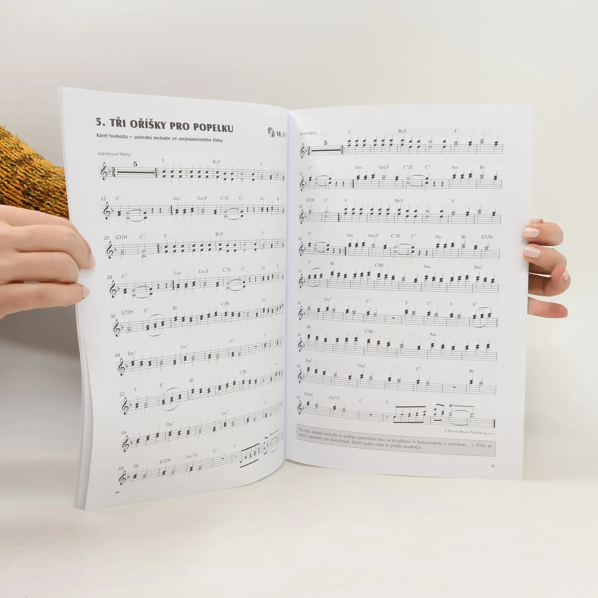Kniha obsahuje 12 pohádkových melodií pro sopránové a altové flétny s doprovodem na CD a akordovými značkami pro kytaru, klavír nebo keybord. Seznam skladeb 1. O turecký zemi 2. Princezna ze mlejna 3. O šípkových růžích 4. Jak se budí princezny 5. Tři oříšky pro Popelku 6. Já ti prstýnek dám 7. Nes mě, loďko 8. Lotrando a Zubejda 9. Voda, voděnka 10. Svatební menuet 11. Trpasličí svatba 12. Páni kluci Noty, slouží jako doplněk učiva na ZUŠ, ale jsou vhodné i pro potřeby Základních škol, hudebních kroužků či pro samouky. Jsou určeny všem, kdo si rádi hrají a chtějí se zároveň něčemu přiučit. Nelze je vnímat jako metodickou učebnici hry na flétnu, ale jako zpestření výuky pomocí známých melodií. // Upozornění: Pokud na fotografii nejsou zobrazeny přílohy (CD, brožury, mapy apod.), pak tyto nejsou součástí.