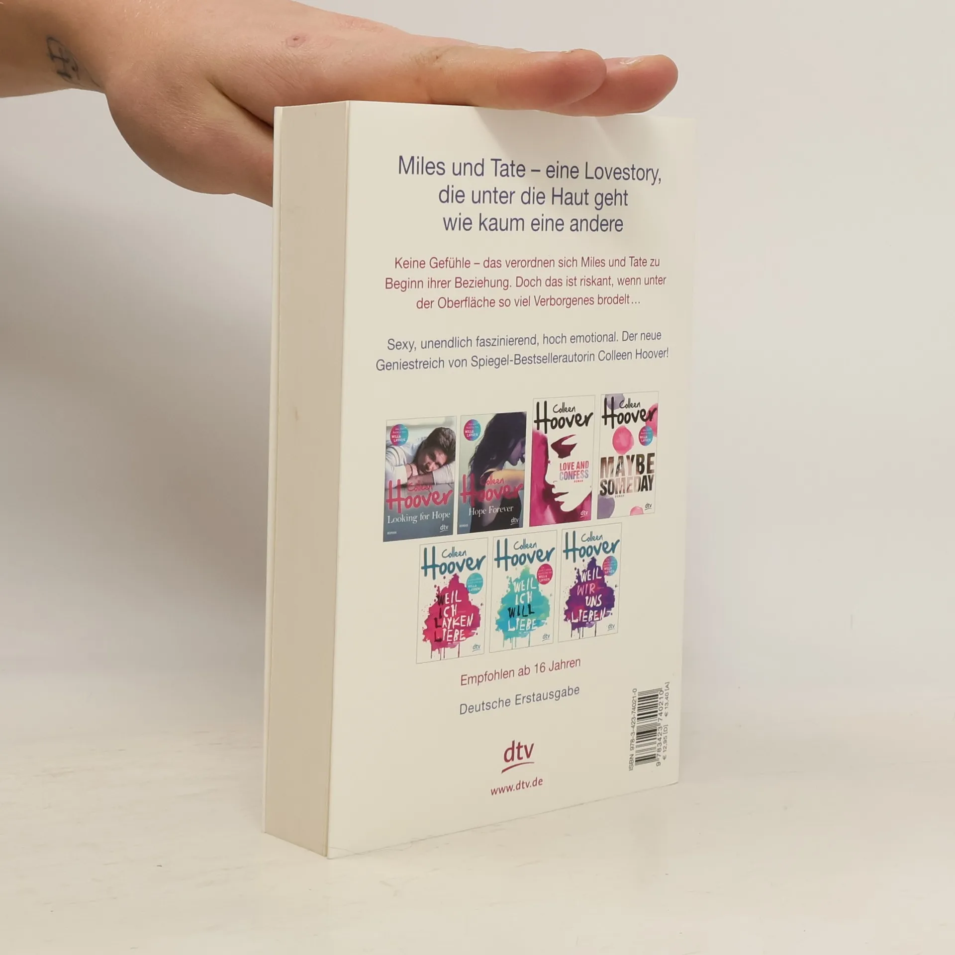 Zurück ins Leben lieben – der neue Geniestreich von Colleen Hoover Als Tate zum Studium nach San Francisco zieht, stolpert sie dort gleich am ersten Abend über Miles Archer: Miles, der Freund ihres Bruders, der niemals lächelt, meistens schweigt und offensichtlich eine schwere Bürde mit sich herumträgt. Miles, der so attraktiv ist, dass Tate bei seinem Anblick Herzflattern und weiche Knie bekommt. Miles, der, wie er selbst zugibt, seit sechs Jahren keine Frau mehr geküsst hat. Miles, von dem Tate sich besser fernhalten sollte, wenn ihr ihr Gefühlsleben lieb ist …