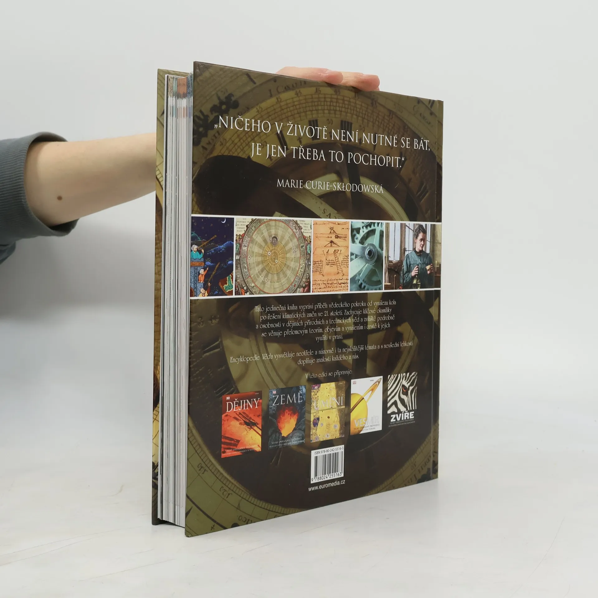 Tato jedinečná kniha vypráví příběh vědeckého pokroku od vynálezu kola až po řešení klimatických změn ve 21. století. Zachycuje všechny klíčové okamžiky nových objevů a ukazuje, jak lidé a jejich myšlenky a vynálezy měnili náš svět. Encyklopedie Věda, vybavená nádhernými fotografiemi a názornými ilustracemi, představuje i ta nejsložitější témata jednoduchým a srozumitelným způsobem, zpřístupňujícím tak lidské vědění čtenářům všech věkových kategorií.