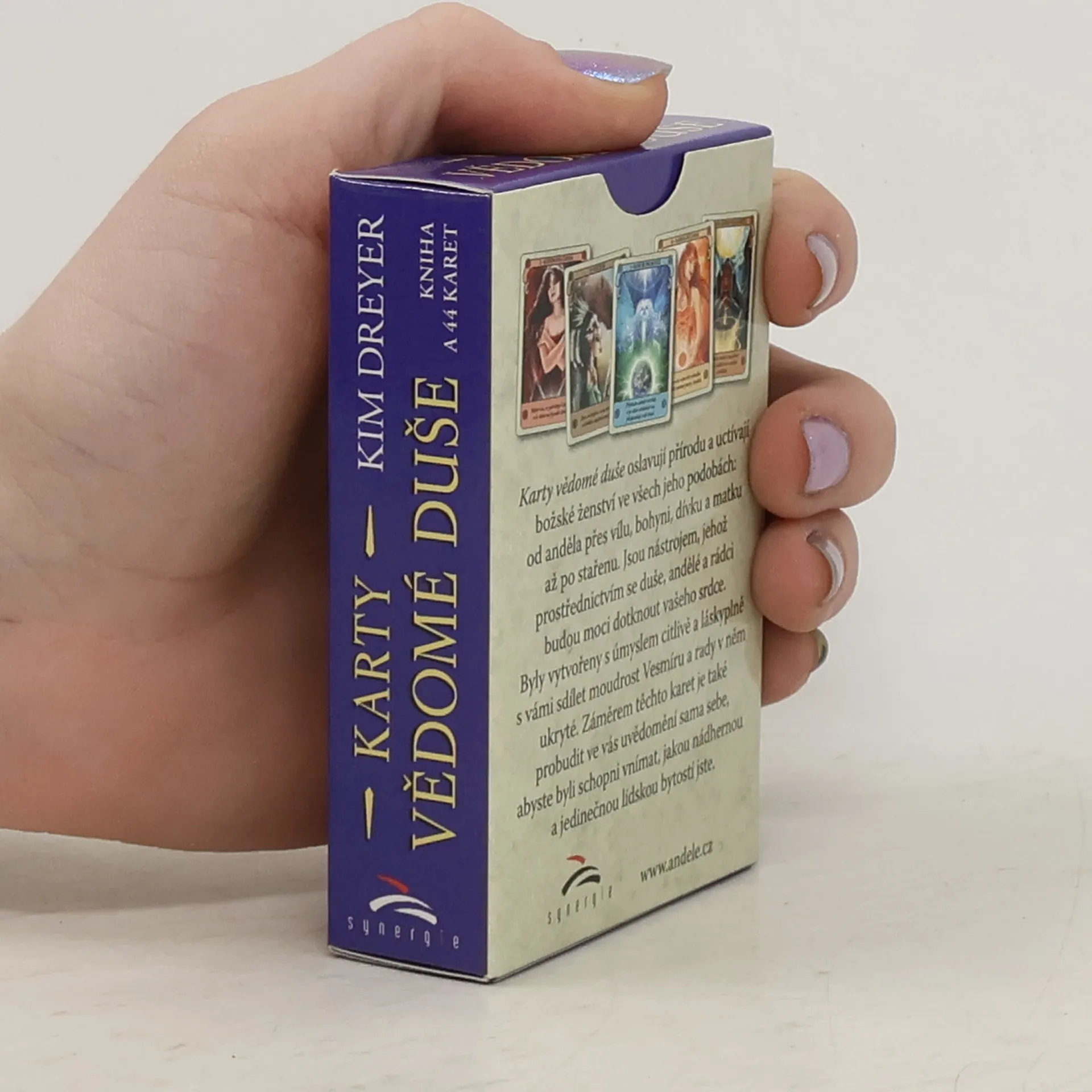Karty vědomé duše oslavují přírodu a uctívají božské ženství ve všech jeho podobách: od anděla přes vílu, bohyni, dívku a matku až po stařenu. Jsou nástrojem, jehož prostřednictvím se duše, andělé a rádci budou moci dotknout vašeho srdce. Byly vytvořeny s úmyslem citlivě a láskyplně s vámi sdílet moudrost Vesmíru a rady v něm ukryté. Záměrem těchto karet je také probudit ve vás uvědomění sama sebe, abyste byli schopni vnímat, jakou nádhernou a jedinečnou lidskou bytostí jste.