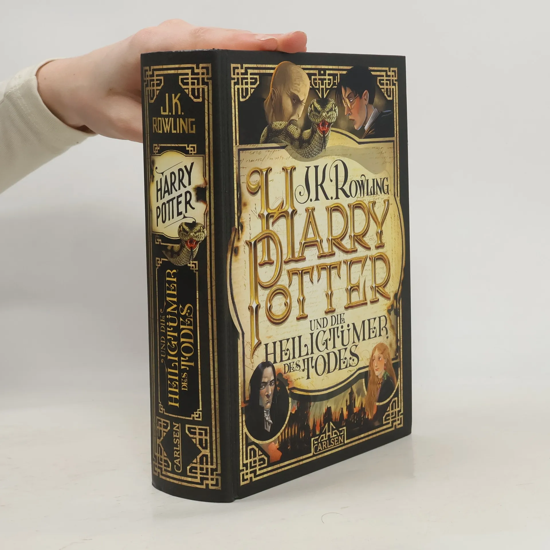Detailreiche und prachtvoll veredelte Gestaltung aller Bände anlässlich des 20-jährigen Jubiläums An eine Rückkehr nach Hogwarts ist für Harry nicht zu denken. Er muss alles daransetzen, die übrigen Horkruxe zu finden. Erst wenn sie zerstört sind, kann Voldemorts Schreckensherrschaft vergehen. Mit Ron und Hermine an seiner Seite begibt sich Harry auf eine gefährliche Reise durch das ganze Land. Als die drei auf die rätselhaften Heiligtümer des Todes stoßen, muss Harry sich entscheiden. Soll er dieser Spur folgen? Doch welche Wahl er auch trifft – am Ende des Weges wird der Dunkle Lord auf ihn warten. Ein generationenübergreifender Fantasy-Klassiker Millionen von Leser*innen und mehrere Generationen sind mit den Geschichten von Harry Potter aufgewachsen. Die Autorin hat mit Hogwarts ein Universum geschaffen, das einzigartig ist und eine immense kulturelle Bedeutung erlangt hat. Neben der magischen Welt und spannenden Abenteuern spielen auch moralische Werte wie Freundschaft, Toleranz, Loyalität und der Einsatz für das Gute eine wichtige Rolle. Diese vom italienischen Illustrator Iacopo Bruno neu gestaltete Ausgabe des siebten Bandes der Harry-Potter-Serie wird Leser*innen jeden Alters verzaubern.