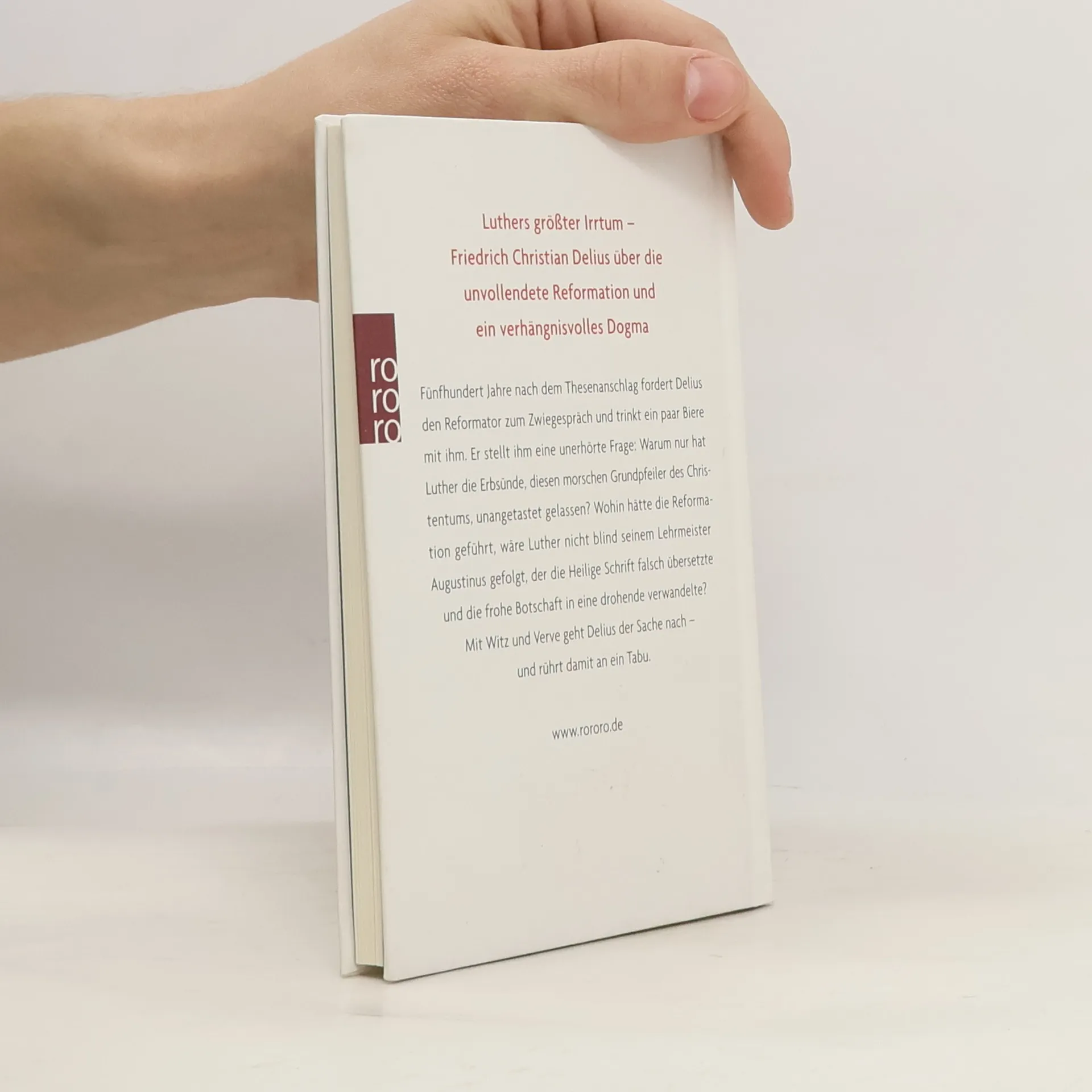 Luthers größter Irrtum - Friedrich Christian Delius über die unvollendete Reformation und ein verhängnisvolles Dogma. Fünfhundert Jahre nach dem Thesenanschlag fordert Delius den Reformator zum Zwiegespräch und trinkt ein paar Biere mit ihm. Er stellt ihm eine unerhörte Frage: Warum nur hat Luther die Erbsünde, diesen morschen Grundpfeiler des Christentums, unangetastet gelassen? Wohin hätte die Reformation geführt, wäre Luther nicht blind seinem Lehrmeister Augustinus gefolgt, der die Heilige Schrift falsch übersetzte und die frohe Botschaft in eine drohende verwandelte? Mit Witz und Verve geht Delius der Sache nach - und rührt damit an ein Tabu.