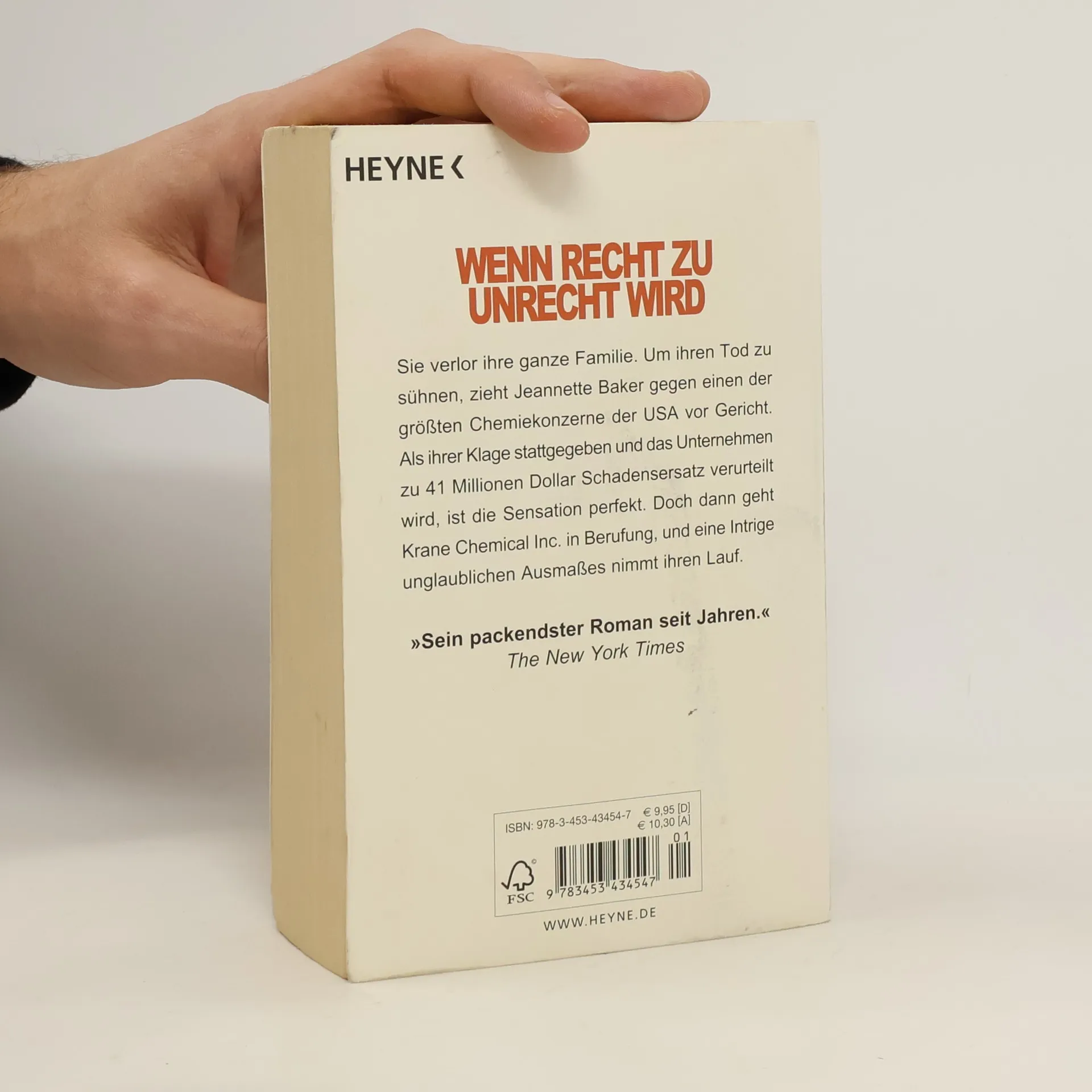 Wenn Recht zu Unrecht wird Sie verlor ihre ganze Familie. Um ihren Tod zu sühnen, zieht Jeannette Baker gegen einen der größten Chemiekonzerne der USA vor Gericht. Als ihrer Klage stattgegeben und das Unternehmen zu 41 Millionen Dollar Schadensersatz verurteilt wird, ist die Sensation perfekt. Doch dann geht Krane Chemical Inc. in Berufung, und eine Intrige unglaublichen Ausmaßes nimmt ihren Lauf.