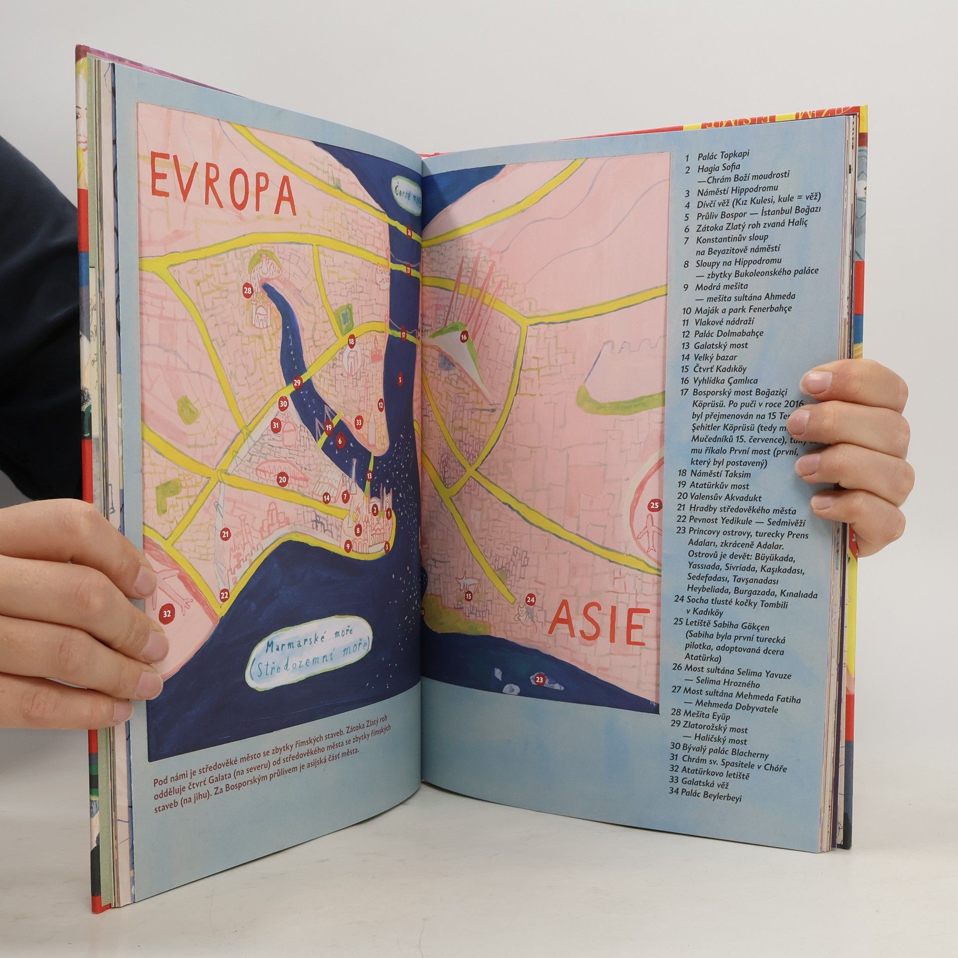 Největší turecké město, brána Orientu, křižovatka kultur, most mezi Asií a Evropou... to všechno je Istanbul. Tereza Říčanová se svým malířským okem podívala na nádheru jeho paláců, kostelů a mešit, ale i na každodenní (a každonoční) život v tamních ulicích, na náměstích a tržištích. Uviděla metropoli kypící životem, kde se stopy velkých kultur a dlouhá historie proplétají s miliony lidských příběhů a kde se pohádková tajemství dávného Orientu mísí s bujnou současnou civilizací.