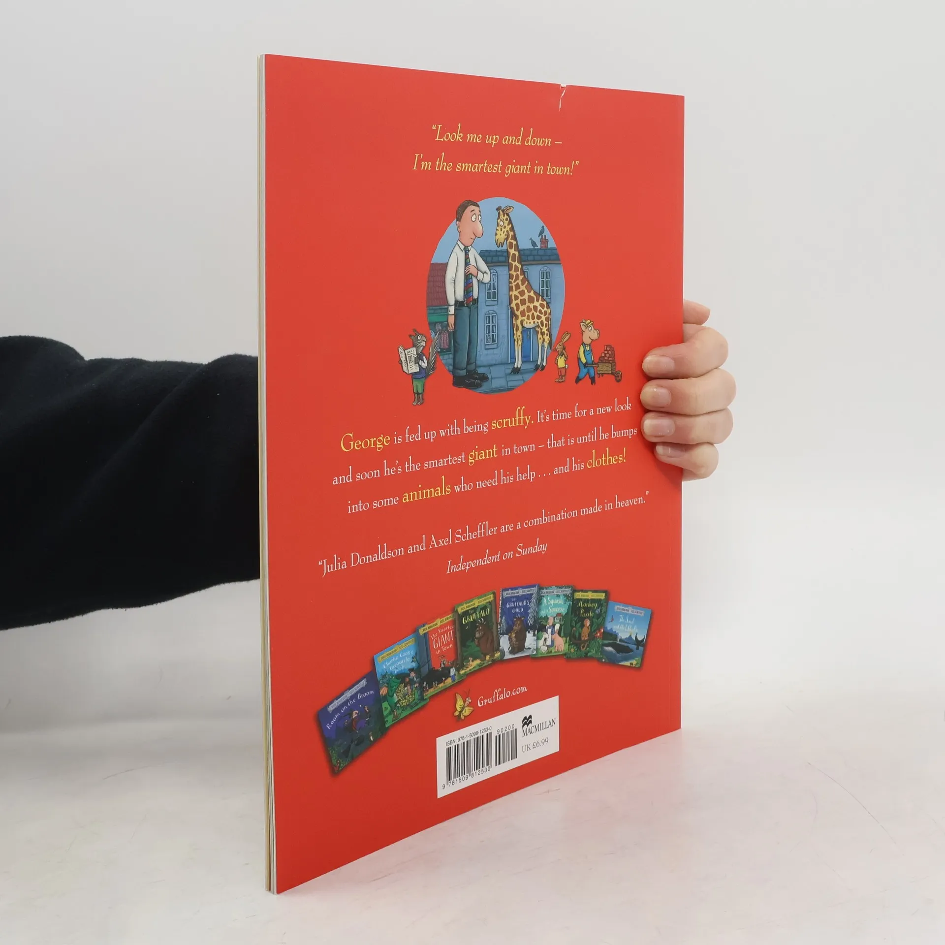 A warm tale about a friendly giant whose heart is better than his dress sense!George wished he wasn't the scruffiest giant in town. So when he sees a new shop selling giant-sized clothes, he decides it's time for a new look: smart trousers, smart shirt, stripy tie, shiny shoes. Now he's the smartest giant in town . . . until he bumps into some animals who desperately need his help - and his clothes! All children will love The Smartest Giant in Town, a funny and warm-hearted tale from the unparalleled picture-book partnership of Julia Donaldson and Axel Scheffler, creators of The Gruffalo. This edition features the classic story with a stunning redesigned cover and beautiful finish, making it a must-have addition to the bookshelves of all Donaldson and Scheffler fans - big and small! Also available with redesigned covers are The Gruffalo, The Gruffalo's Child, Room on the Broom, The Snail and the Whale, Monkey Puzzle, Charlie Cook's Favourite Book, and A Squash and a Squeeze.