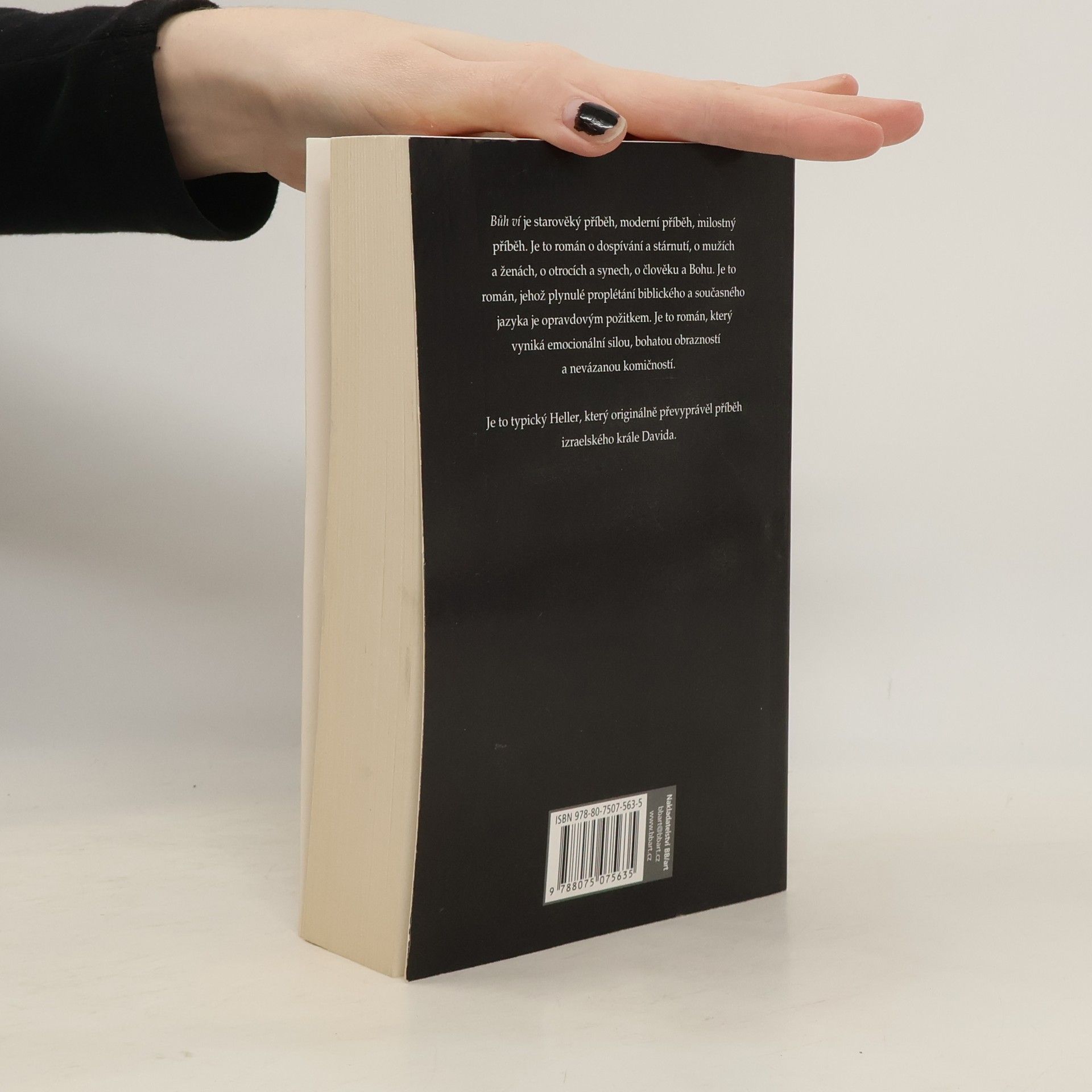 Hellerův román Bůh ví, pohybující se na půdě groteskní nadsázky, je příběhem Davida, muže, který zabil Goliáše, ale taky Davida, jakého jsme až dosud neznali. Je to román, jehož plynulé proplétání biblického a současného jazyka je opravdovým požitkem. Vyniká emocionální silou, bohatou obrazností a nevázanou komičností.