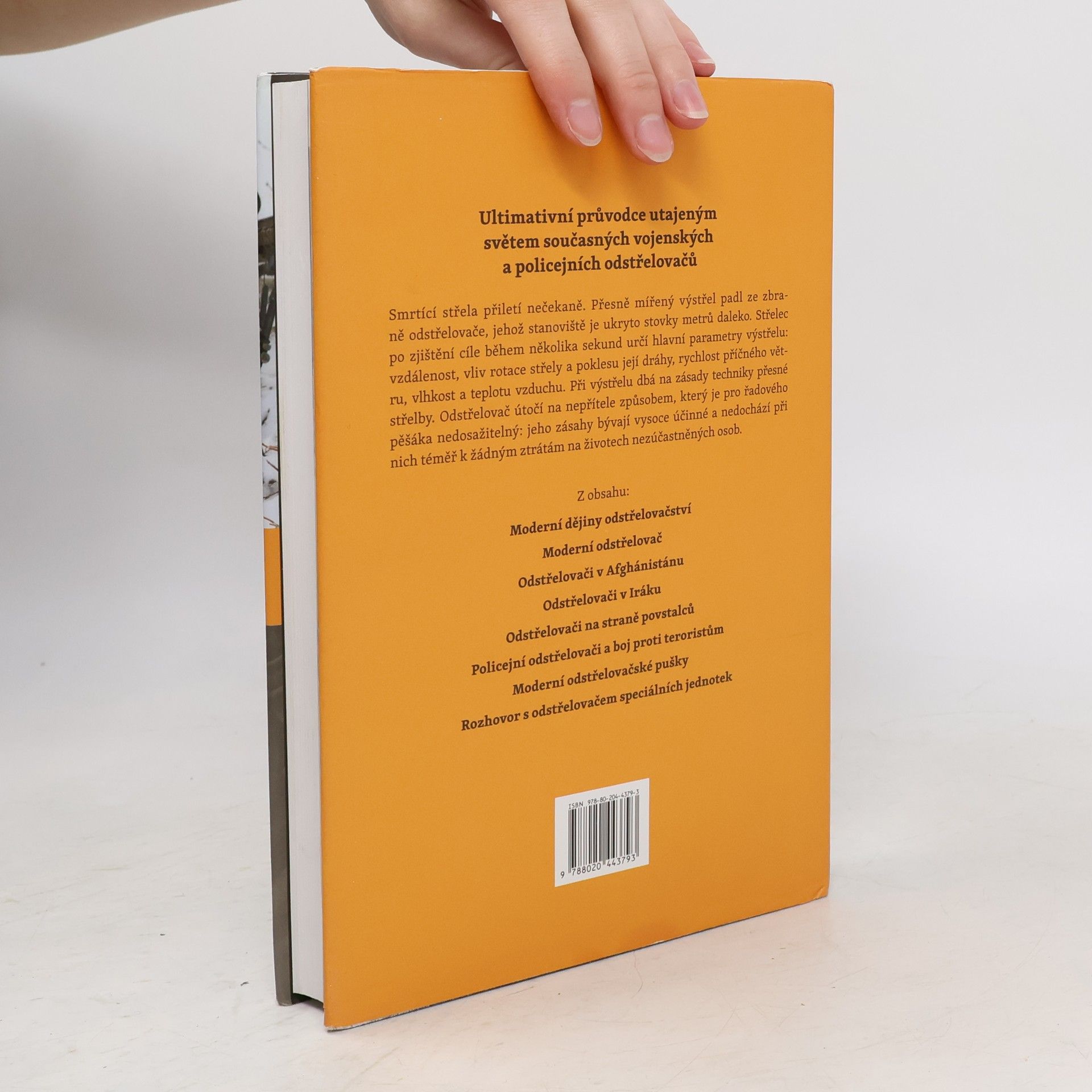 V letech následujících po útoku na Světové obchodní středisko v New Yorku 11. září 2001 došlo k významným změnám v uplatnění odstřelovačů při válečných i bezpečnostních operacích. Rychle se vyvíjely zbraně, střelivo, speciální příslušenství a také příprava odstřelovačů. Nová kniha předního odborníka na speciální síly přibližuje dění na bojištích v Iráku a Afghánistánu, ale seznamuje také s odvážnými protiteroristickými akcemi po celém světě. Z osobních zkušeností odstřelovačů se čtenář dozví řadu podrobností o práci elitních profesionálních střelců – jaký je jejich výcvik, výzbroj, vybavení, jak využívají moderní techniku, kde, kdy a jak se zapojují do akce. Kniha Moderní odstřelovači nabízí dosud nejaktuálnější a nejrealističtější pohled na mnoha mýty opředené specialisty, kteří dnes hrají klíčovou roli v konvenčním i nekonvenčním válčení a neobejde se bez nich žádná protiteroristická jednotka.