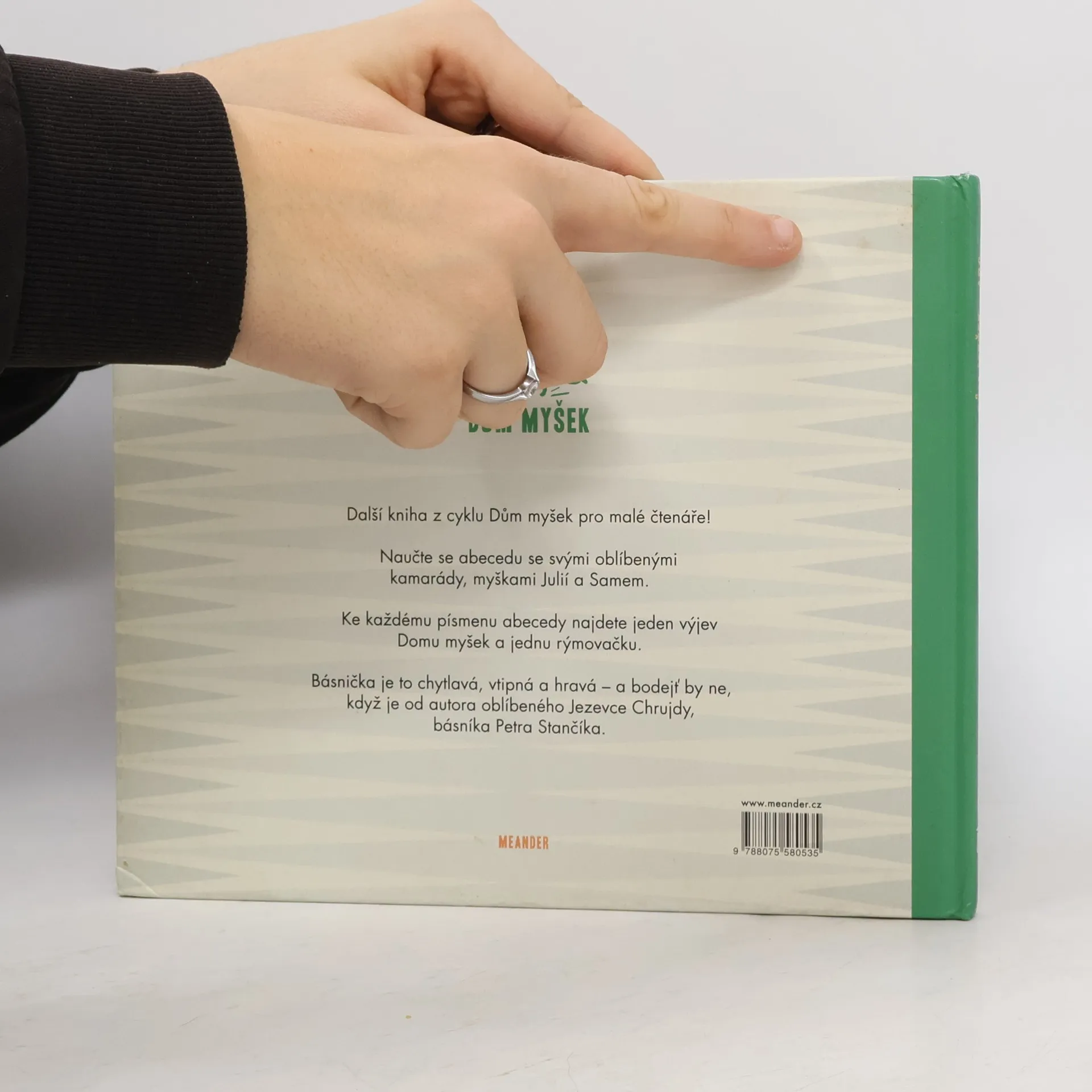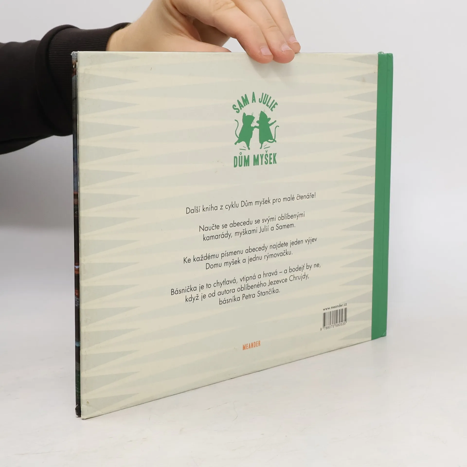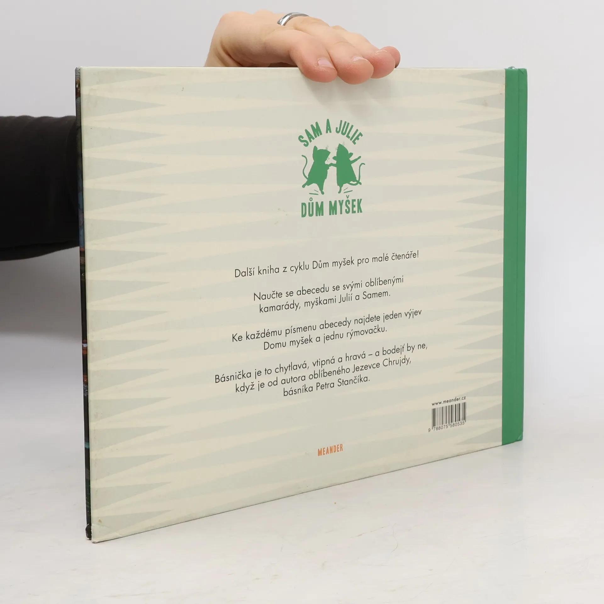 Další kniha z cyklu Dům myšek pro malé čtenáře! Tentokrát v podobě hravého leporela pro ty nejmenší děti. Naučte se abecedu se svými oblíbenými kamarády, myškami Julií a Samem. Ke každému písmenu abecedy najdete jeden výjev Domu myšek a jednu rýmovačku. Básnička je to chytlavá, vtipná a hravá – a bodejť by ne, když je od autora oblíbeného Jezevce Chrujdy, básníka Petra Stančíka.