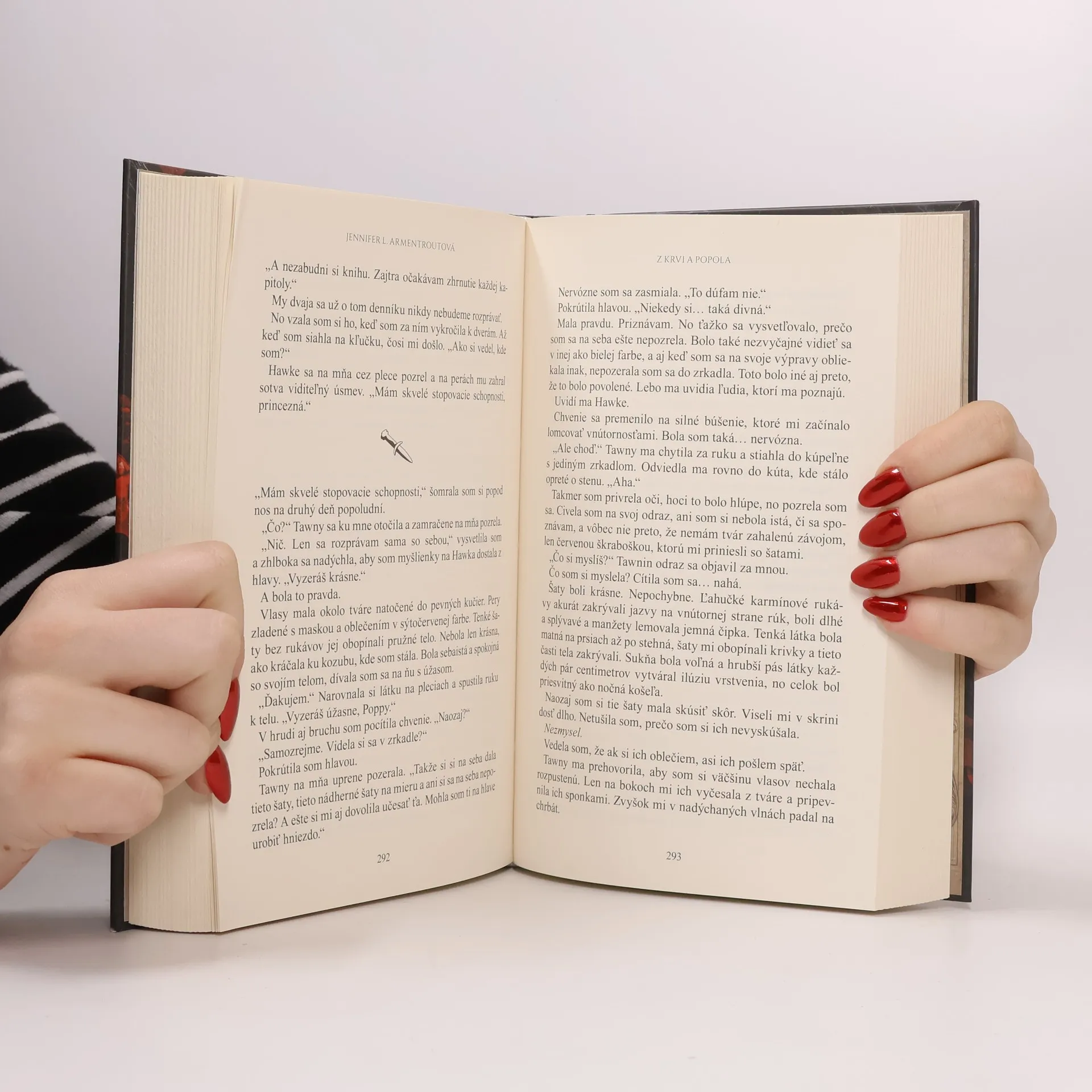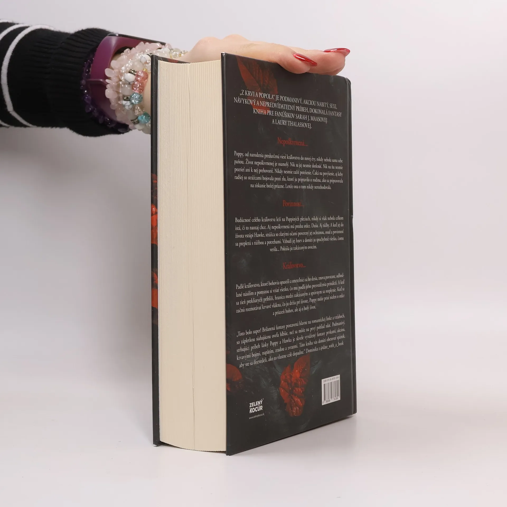 Poppy, predurčená viesť kráľovstvo, žije osamelý život nepoškvrnenej, kde sa jej nikto nesmie dotknúť ani s ňou hovoriť. Čaká na povýšenie, pričom radšej bojuje proti zlu, ktoré jej vzalo rodinu, než aby sa pripravovala na získanie božej priazne. Napriek tomu, že na jej pleciach leží budúcnosť kráľovstva, Poppy si nie je istá, či to naozaj chce. Jej srdce a túžby sa prebudia, keď do jej života vstúpi Hawke, strážca s tajomnými zlatými očami, ktorý ju má chrániť. Ich vzťah ju núti spochybniť všetko, čomu doteraz verila, a pokúša ju zakázaným ovocím. Kráľovstvo, ktoré bohovia opustili, sa snaží získať späť to, čo považuje za svoje. Keď sa blíži hrozba prekliatych, Poppy riskuje nielen srdce a priazeň bohov, ale aj svoj život. Každé zakrvavené vlákno jej existencie sa začína rozmotávať, a ona musí čeliť osudu, ktorý je plný násilia a pomsty. Jennifer L. Armentroutová, medzinárodne uznávaná autorka, žije v Západnej Virgínii a píše pre mládež aj dospelých. Jej dielo sa vyznačuje napínavými romantickými zápletkami a fantastickými prvkami. Recenzenti chvália jej schopnosť kombinovať romantiku s akciou a napätím, pričom príbeh Poppy a Hawkea je jedným z najpôsobivejších, ktoré čitateľov nútia obetovať spánok, aby zistili, ako to celé dopadne.