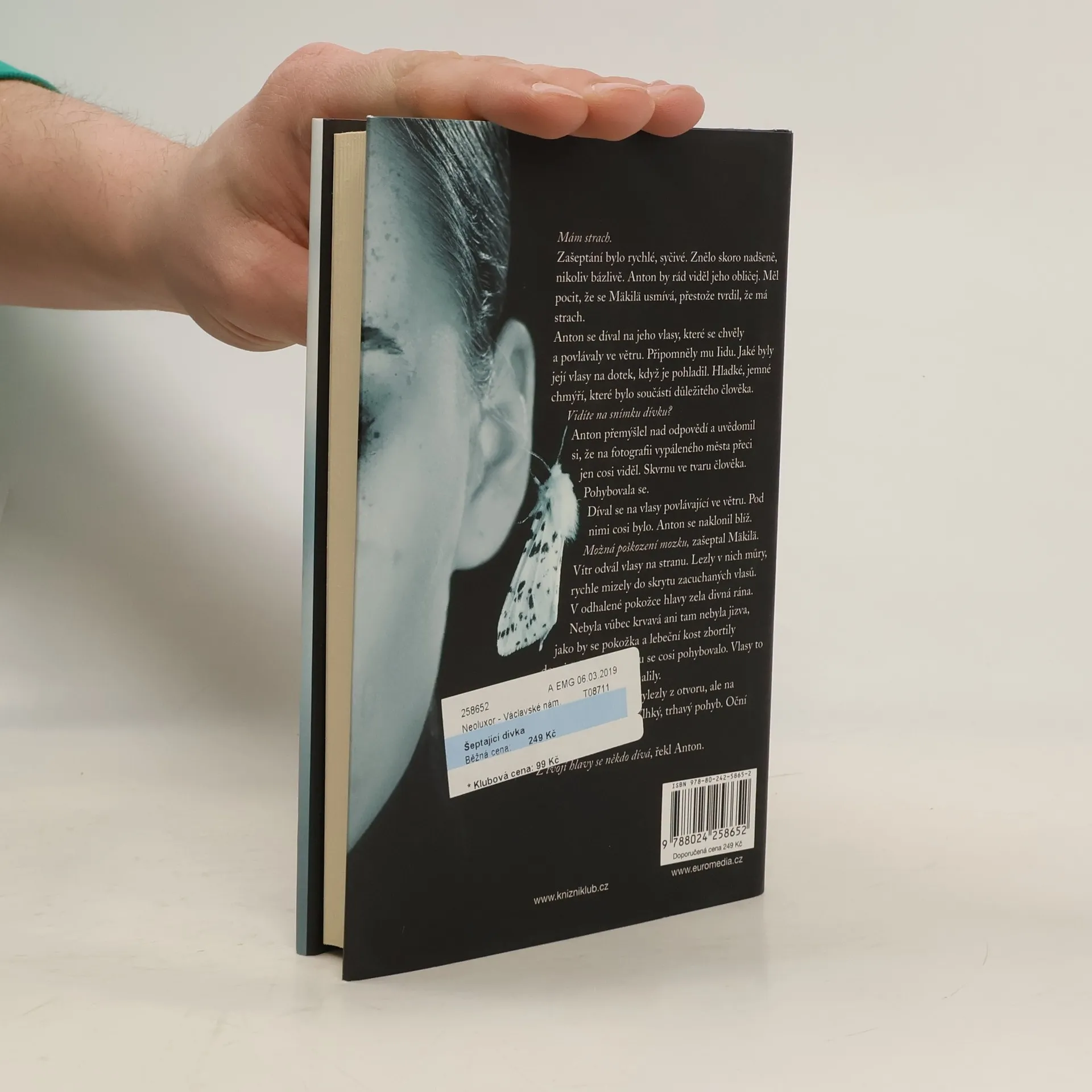 Zní nepřetržitě, jako zvonění v uchu, ale tenhle šepot je nakažlivý… Finský Stephen King přináší fanouškům Báby Motyky další nervydrásající hororový příběh. Helsinský psycholog Anton Rajamaa se už léta nestýká se svou dcerou Idou. Brutální vražda jeho kolegy, který mu před smrtí odkáže složku s informacemi o Idě, ho však přinutí změnit názor a vydat se po jejích stopách do západofinského městečka Vaasa. Tohle místo ale jako by bylo prokleté – vznáší se nad ním stín krvavé legendy, obestírá ho historka o náboženském kultu a lidi v něm pronásledují sluchové halucinace, jež některé dohánějí k šílenství. Chce-li se Anton znovu setkat se svou dcerou, bude se muset za hříchy spáchané v minulosti očistit…
