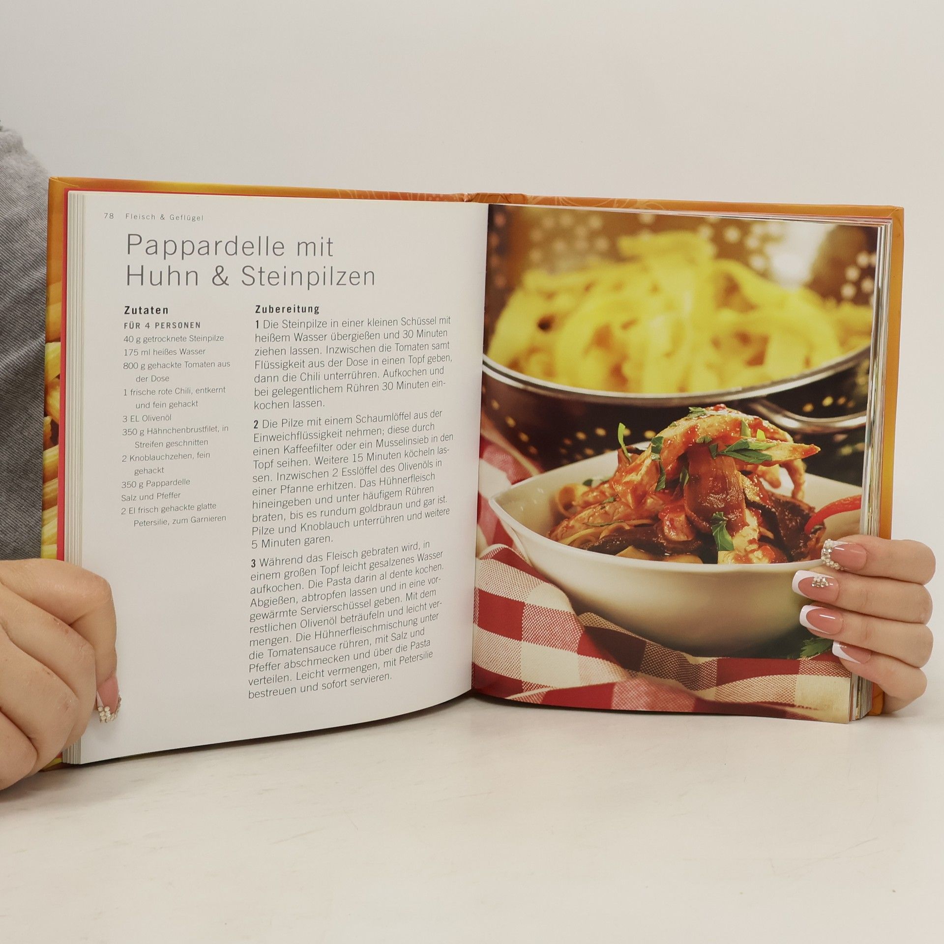 Was wäre das Leben ohne Nudeln? Sie sind köstlich, preiswert, nahrhaft, leicht zu kochen und ausgesprochen vielseitig. Hier finden Sie für jede erdenkliche Mahlzeit und Gelegenheit - vom leichten schnellen Essen bis hin zur herzhaften Hauptmahlzeit - das passende Nudelrezept. Die Wahl der richtigen Pastasorte trägt dabei entscheidend zum Gelingen des Gerichts bei. Probieren Sie alle aus!* Über 100 verführerisch-köstliche Rezeptvorschläge* Kurze Einführung in jedes Kapitel mit praktischen Tipps* Klare Zutatenangaben und leicht nachvollziehbare Anleitungen* Farbige Abbildungen zu jedem Rezept