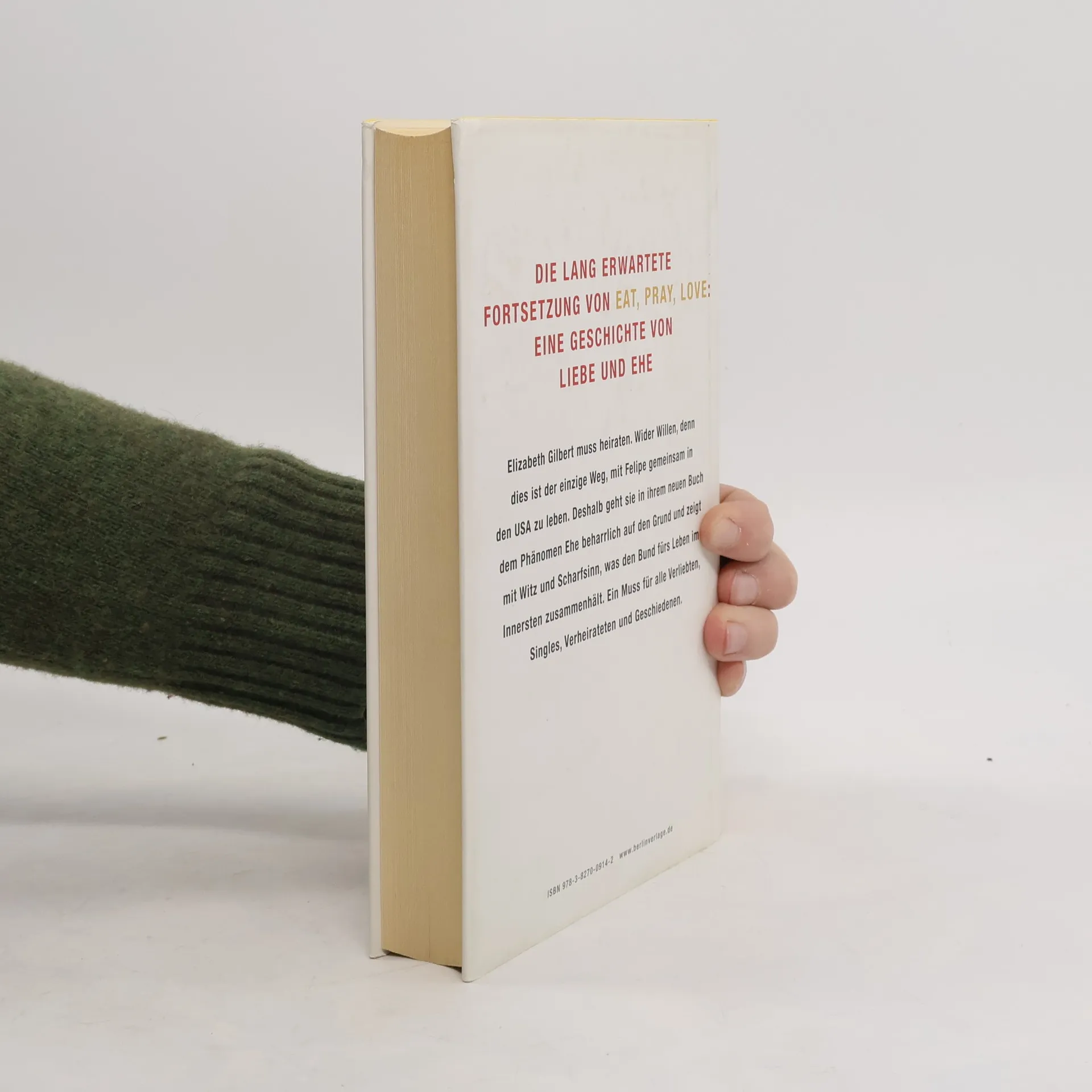 Am Ende des Buches EAT, PRAY, LOVE verliebt sich Elizabeth Gilbert auf Bali in den Brasilianer Felipe. Sie schwören sich ewige Treue, aber zugleich versprechen sie sich nie, nie, unter keinen Umständen zu heiraten: Beide haben traumatische Scheidungen hinter sich. Die amerikanischen Grenzbehörden machen ihnen allerdings einen Strich durch die Rechnung: Felipe darf nicht mehr einreisen, außer - sie geben sich das Jawort. Verurteilt zur Eheschließung, beginnt Elizabeth Gilbert über das Heiraten nachzudenken und ihre Zweifel zu hinterfragen. In vielen geistreichen und sehr persönlichen Betrachtungen über die Ehe erkennen wir uns alle wieder, egal ob Single, verheiratet oder geschieden.