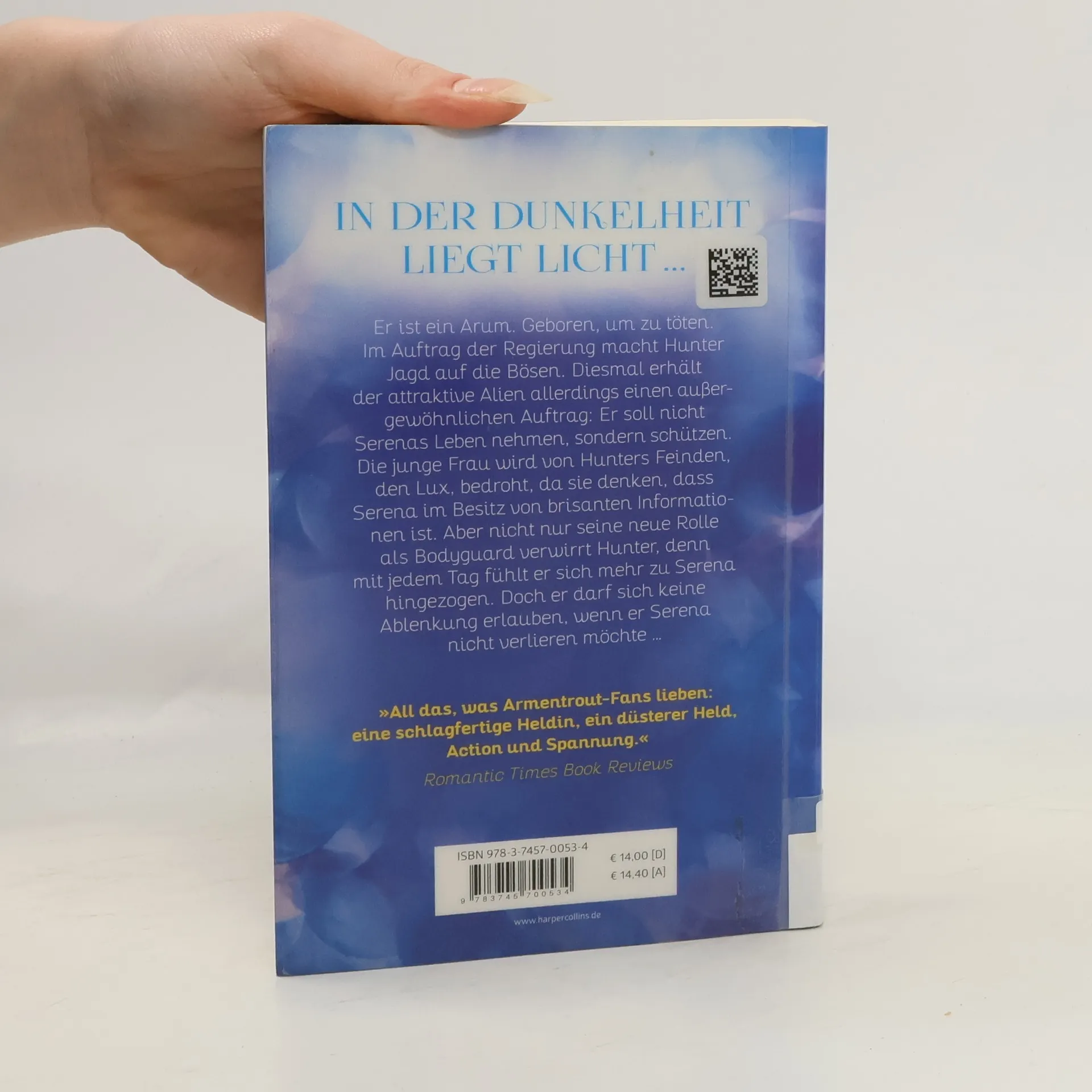 Das prickelnde Spin-off der SPIEGEL-Bestsellerserie »Obsidian« Er ist ein Arum. Geboren, um zu töten. Im Auftrag der Regierung macht Hunter Jagd auf die Bösen. Diesmal erhält der attraktive Alien allerdings einen außergewöhnlichen Auftrag: Er soll nicht Serenas Leben nehmen, sondern schützen. Die junge Frau wird von Hunters Feinden, den Lux, bedroht, da sie denken, dass Serena im Besitz von brisanten Informationen ist. Aber nicht nur seine neue Rolle als Bodyguard verwirrt Hunter, denn mit jedem Tag fühlt er sich mehr zu Serena hingezogen. Doch er darf sich keine Ablenkung erlauben, wenn er Serena nicht verlieren möchte … Wenn der Böse zum Helden wird und plötzlich auf der Seite des Lichts kämpft ... »All das, was Armentrout-Fans lieben, garantiert: eine schlagfertige Heldin, ein düsterer Held, Action und Abenteuer.« Romantik Times Book Reviews