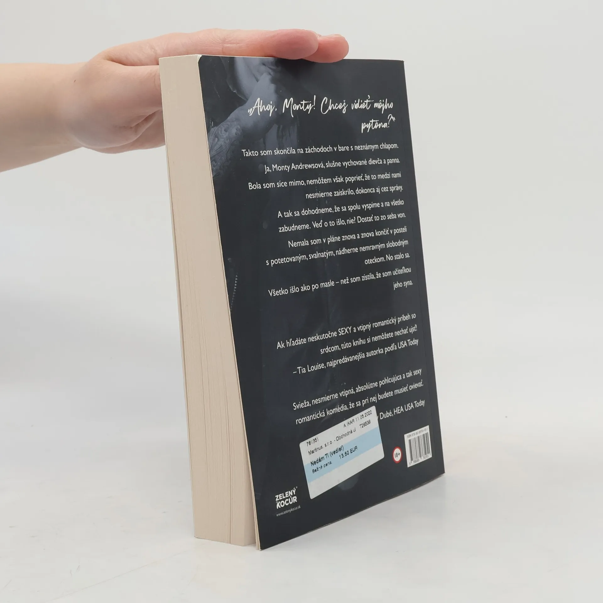Jedna noc s jeho pytónom mi nestačila... „Ahoj, Monty! Chceš vidieť môjho pytóna?“ Takto som skončila na záchodoch v bare s neznámym chlapom. Ja, Monty Andrewsová, slušne vychované dievča a panna. Bola som síce mimo, nemôžem však poprieť, že to medzi nami nesmierne zaiskrilo, dokonca aj cez správy. A tak sa dohodneme, že sa spolu vyspíme a na všetko zabudneme. Veď o to išlo, nie? Dostať to zo seba von. Nemala som v pláne znova a znova končiť v posteli s potetovaným, svalnatým, nádherne nemravným slobodným oteckom. No stalo sa. Všetko išlo ako po masle – než som zistila, že som učiteľka jeho syna.