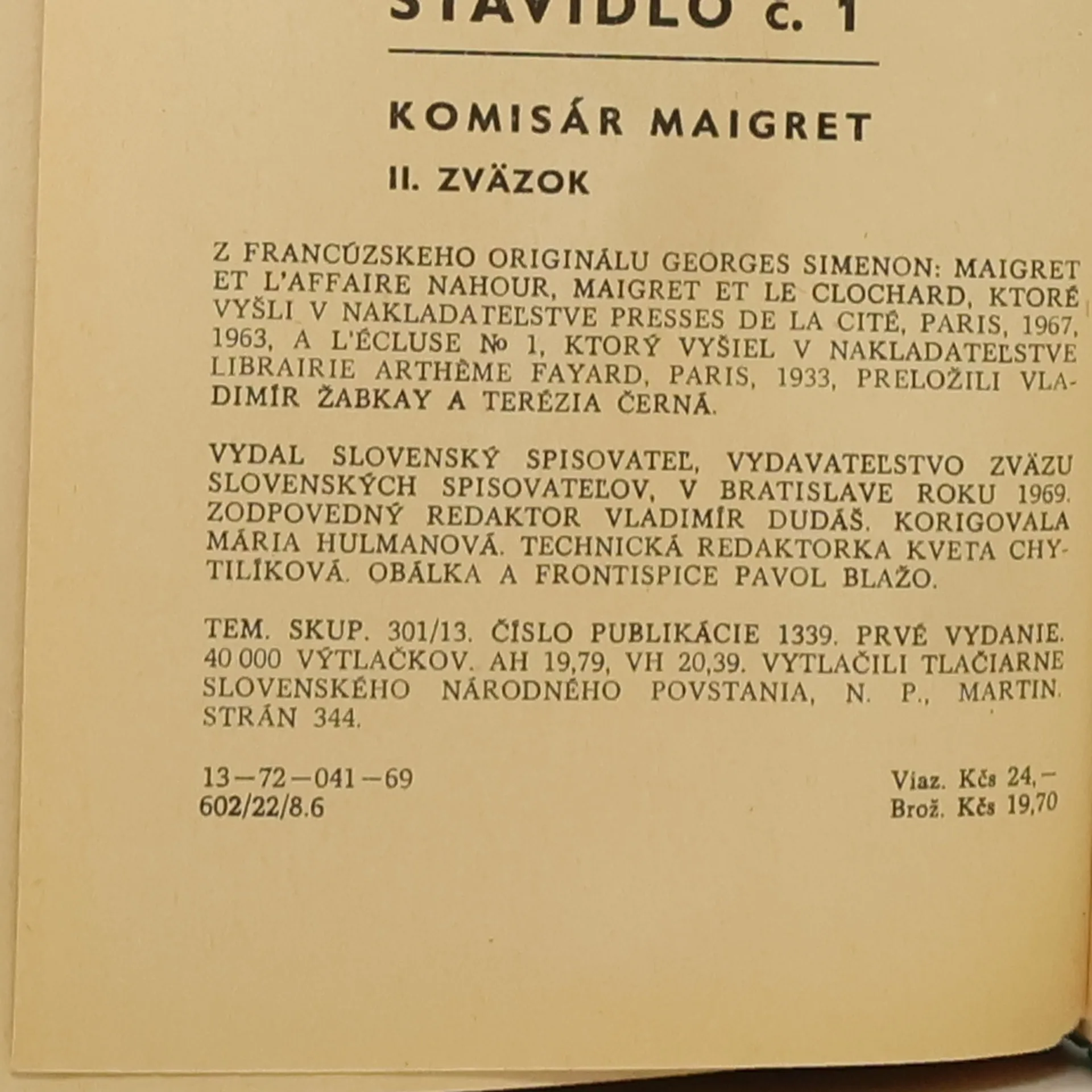 Von Maigret a prípad Nahour. Maigret a tulák. Stavidlo č. 1 (1969) sind aktuell auf Lager verfügbar.