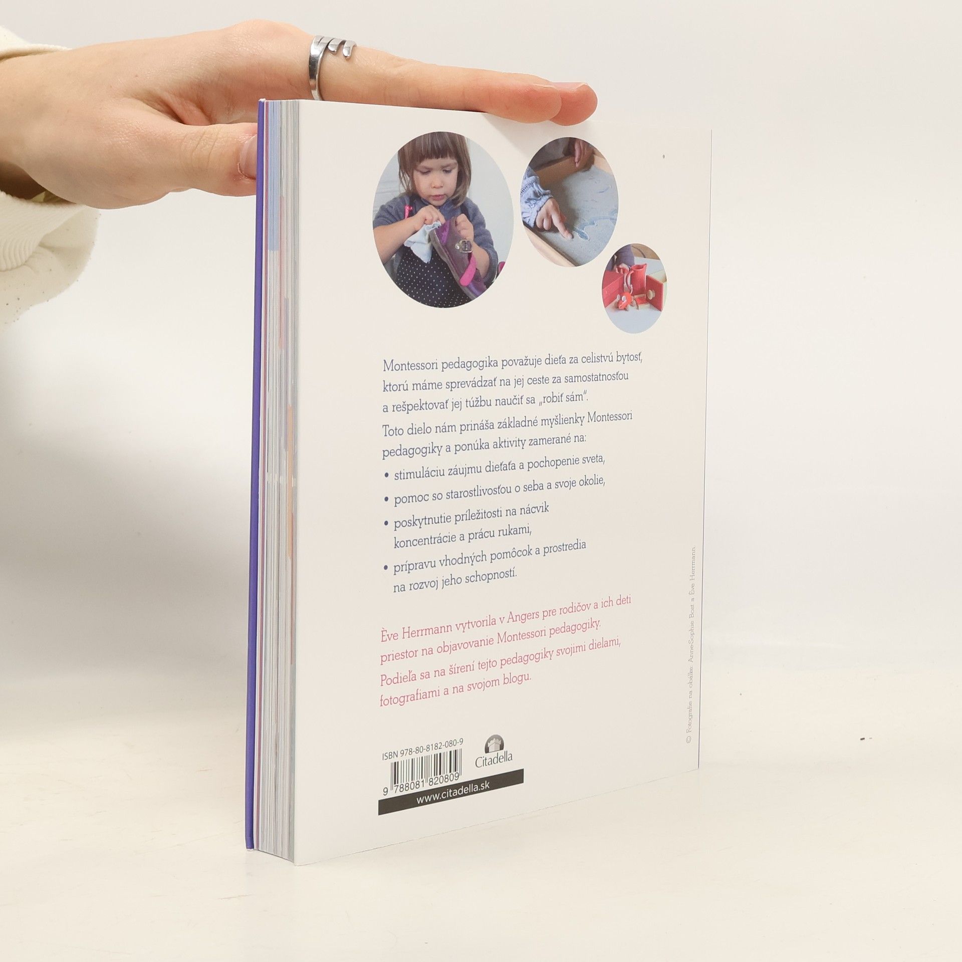 Montessori pedagogika považuje dieťa za celistvú bytosť, ktorú máme sprevádzať na jej ceste za samostanosťou a rešpektovať jej túžbu naučiť sa "robiť sám". Toto dielo nám prináša základní myšlienky Montessori pedagogiky a ponúka aktivity zamerané na: - stimuláciu záujmu dieťaťa a pochopenie sveta, - pomoc so starostlivosťou o seba a svoje okolie, - poskytnutie práležitosti na nácvik koncentrácie a prácu rukami, - prípravu vhodných pomôcok a prostredia na rozvoj jeho schopností.