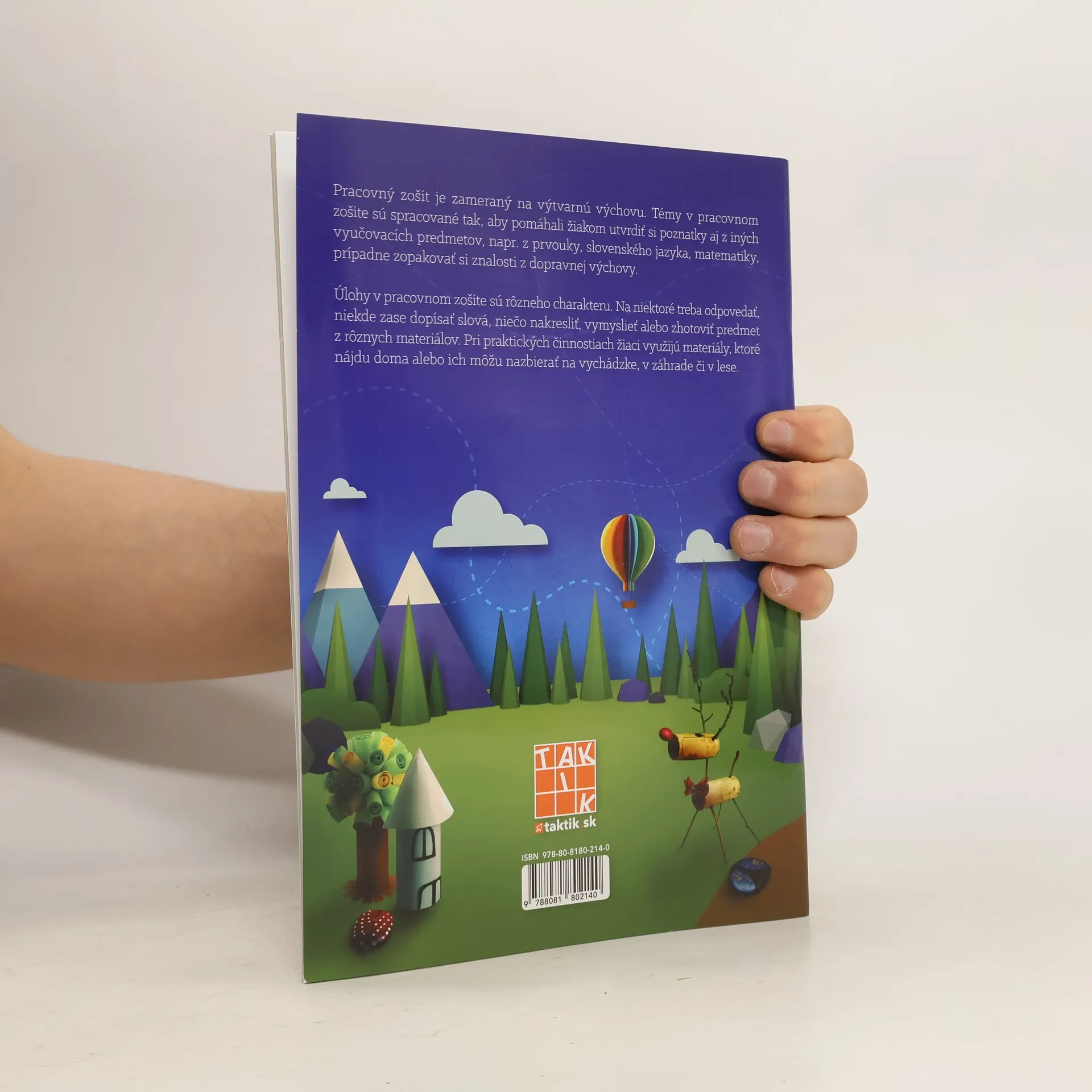 Pracovný zošit je zameraný na výtvarnú výchovu. Témy v pracovnom zošite sú spracované tak, aby pomáhali žiakom utvrdiť si poznatky aj z iných vyučovacích predmetov, napr. z predmetu prvouka, slovenský jazyk, matematika, prípadne zopakovať si znalosti z dopravnej výchovy. Úlohy, ktoré pracovný zošit obsahuje, sú rôzneho charakteru. Na niektoré treba odpovedať, niekde zase dopísať slová, niečo nakresliť, vymyslieť alebo zhotoviť predmet z rôznych materiálov. Pri praktických činnostiach žiaci využijú materiály, ktoré nájdu doma alebo ich môžu nazbierať na vychádzke, v záhrade či v lese.