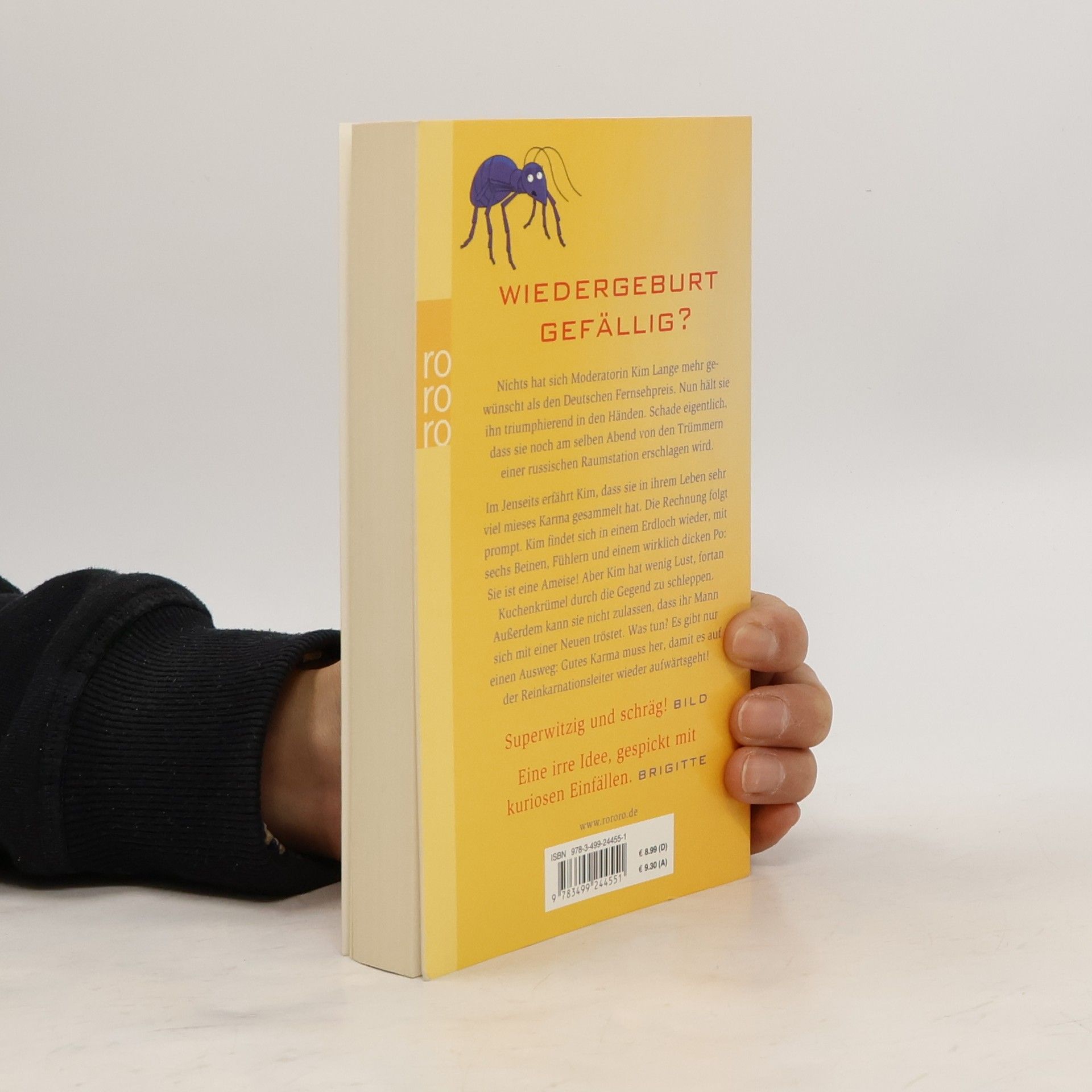 Wiedergeburt gefällig? Nichts hat sich Moderatorin Kim Lange mehr gewünscht als den deutschen Fernsehpreis. Nun hält sie ihn triumphierend in den Händen. Schade eigentlich, dass sie noch am selben Abend von den Trümmern einer russischen Raumstation erschlagen wird.Im Jenseits erfährt Kim, dass sie in ihrem Leben sehr viel mieses Karma gesammelt hat. Die Rechnung folgt prompt. Kim findet sich in einem Erdloch wieder, mit sechs Beinen, Fühlern und einem wirklich dicken Po: Sie ist eine Ameise! Aber Kim hat wenig Lust, fortan Kuchenkrümel durch die Gegend zu schleppen. Außerdem kann sie nicht zulassen, dass ihr Mann sich mit einer Neuen tröstet. Was tun? Es gibt nur einen Ausweg: Gutes Karma muss her, damit es auf der Reinkarnationsleiter wieder aufwärts geht! «Superwitzig und schräg!» (Bild) «Eine irre Idee, gespickt mit kuriosen Einfällen.» (Brigitte)