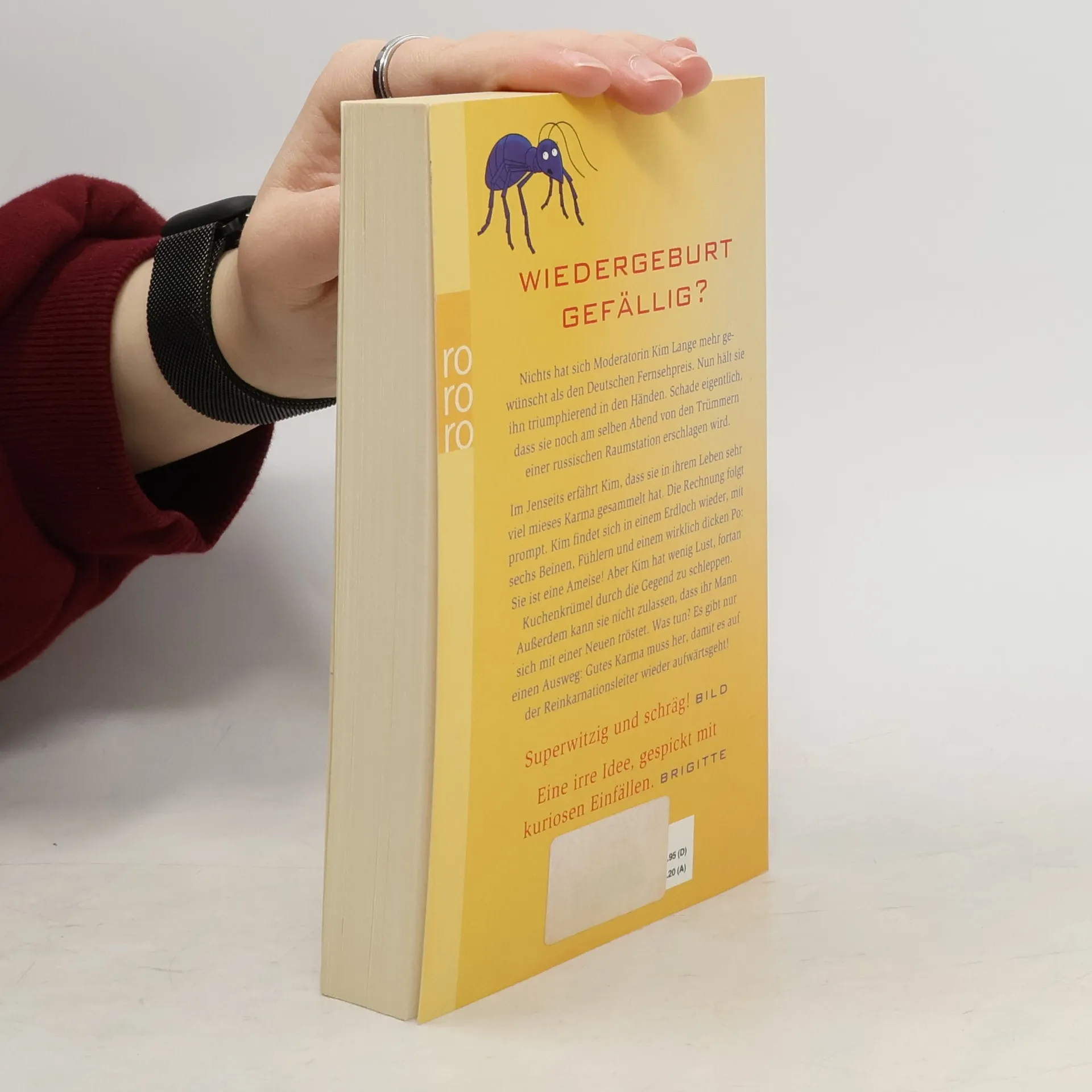 Wiedergeburt gefällig? Nichts hat sich Moderatorin Kim Lange mehr gewünscht als den deutschen Fernsehpreis. Nun hält sie ihn triumphierend in den Händen. Schade eigentlich, dass sie noch am selben Abend von den Trümmern einer russischen Raumstation erschlagen wird.Im Jenseits erfährt Kim, dass sie in ihrem Leben sehr viel mieses Karma gesammelt hat. Die Rechnung folgt prompt. Kim findet sich in einem Erdloch wieder, mit sechs Beinen, Fühlern und einem wirklich dicken Po: Sie ist eine Ameise! Aber Kim hat wenig Lust, fortan Kuchenkrümel durch die Gegend zu schleppen. Außerdem kann sie nicht zulassen, dass ihr Mann sich mit einer Neuen tröstet. Was tun? Es gibt nur einen Ausweg: Gutes Karma muss her, damit es auf der Reinkarnationsleiter wieder aufwärts geht! «Superwitzig und schräg!» (Bild) «Eine irre Idee, gespickt mit kuriosen Einfällen.» (Brigitte)