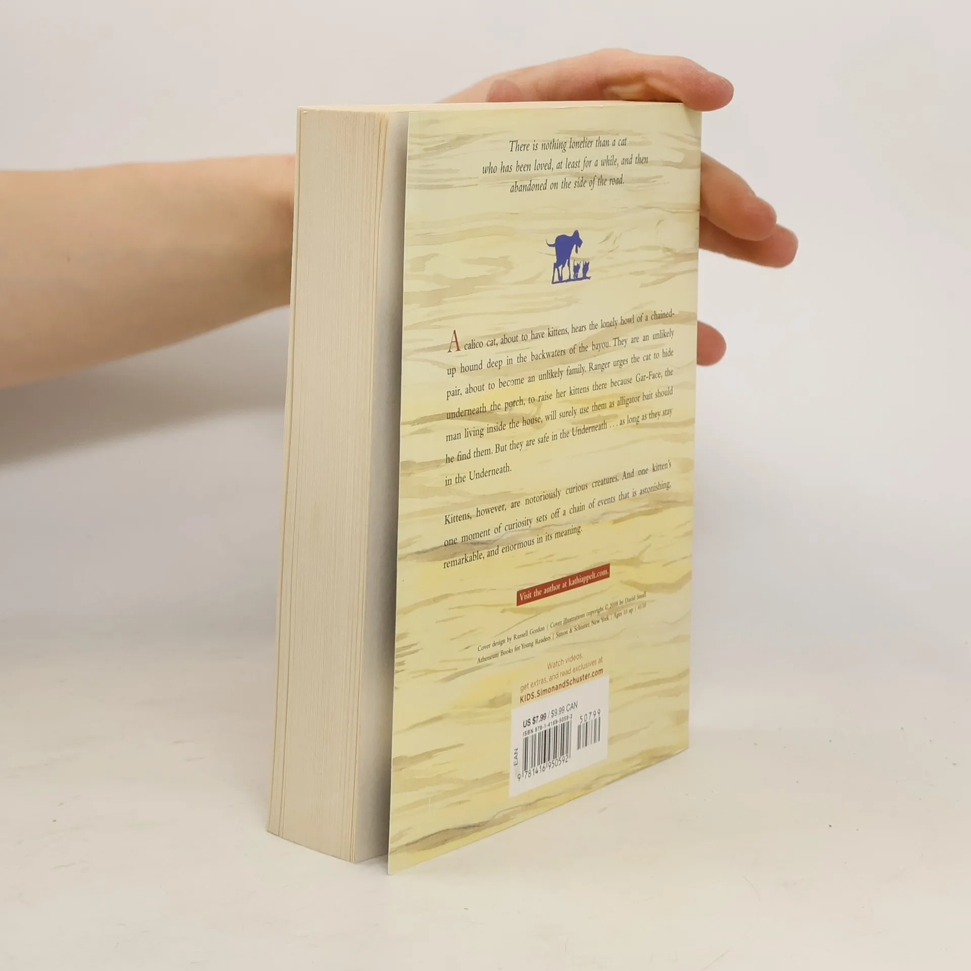 There is nothing lonelier than a cat who has been loved, at least for a while, and then abandoned on the side of the road. A calico cat, about to have kittens, hears the lonely howl of a chained-up hound deep in the backwaters of the bayou. She dares to find him in the forest, and the hound dares to befriend this cat, this feline, this creature he is supposed to hate. They are an unlikely pair, about to become an unlikely family. Ranger urges the cat to hide underneath the porch, to raise her kittens there because Gar-Face, the man living inside the house, will surely use them as alligator bait should he find them. But they are safe in the Underneath...as long as they stay in the Underneath. Kittens, however, are notoriously curious creatures. And one kitten's one moment of curiosity sets off a chain of events that is astonishing, remarkable, and enormous in its meaning. For everyone who loves Sounder, Shiloh, and The Yearling, for everyone who loves the haunting beauty of writers such as Marjorie Kinnan Rawlings, Flannery O'Connor, and Carson McCullers, Kathi Appelt spins a harrowing yet keenly sweet tale about the power of love -- and its opposite, hate -- the fragility of happiness and the importance of making good on your promises.