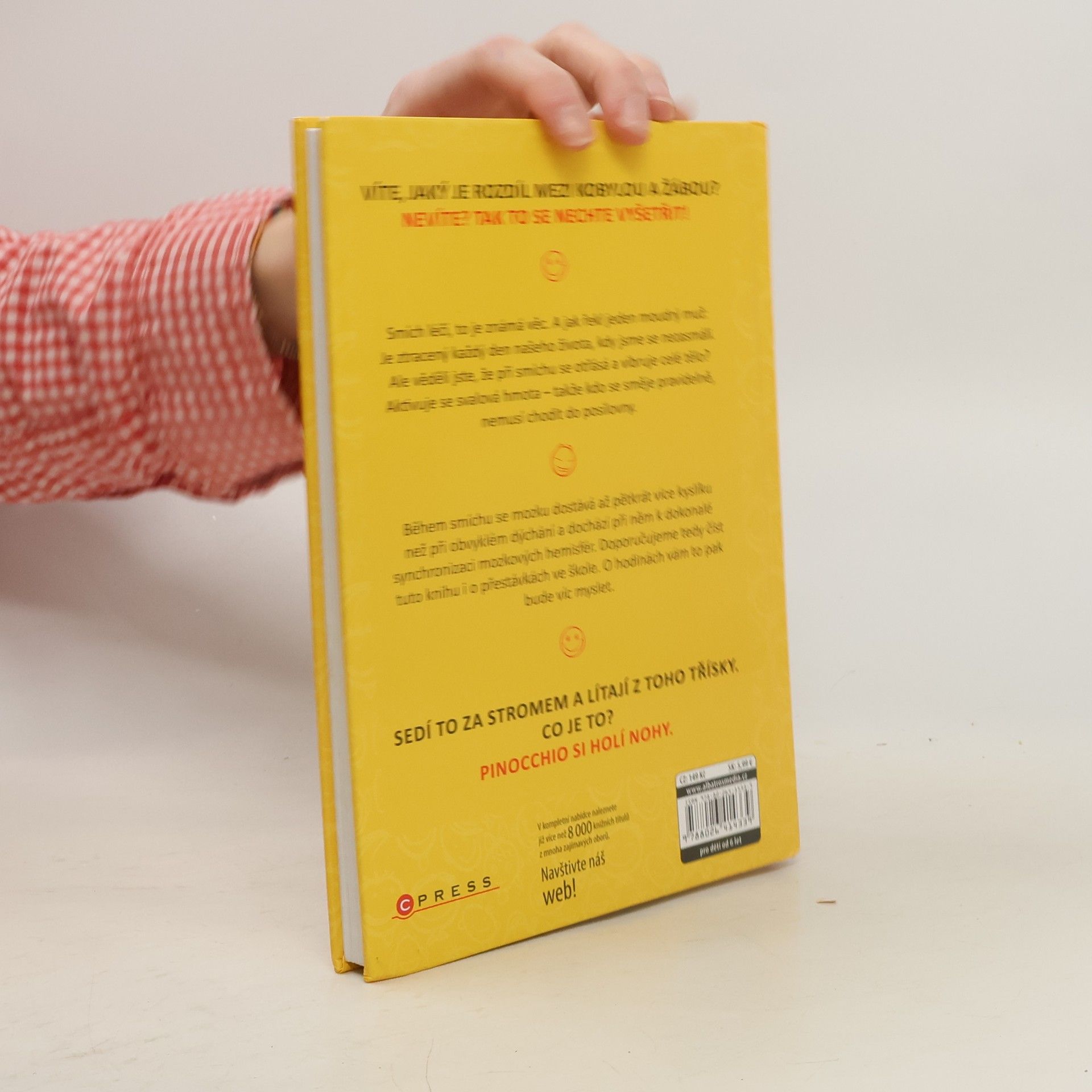 Víte, jaký je rozdíl mezi kobylou a žábou? Nevíte? Tak to se nechte vyšetřit! Smích léčí, to je známá věc. A jak řekl jeden moudrý muž: Je ztracený každý den našeho života, kdy jsme se nezasmáli. Ale věděli jste, že při smíchu se otřásá a vibruje celé tělo? Aktivuje se svalová hmota – takže kdo se směje pravidelně, nemusí chodit do posilovny. Během smíchu se mozku dostává až 5 x více kyslíku než při obvyklém dýchání a dochází při něm k dokonalé synchronizaci mozkových hemisfér. Doporučujeme tedy číst tuto knihu i o přestávkách ve škole. O hodinách vám to pak bude víc myslet.