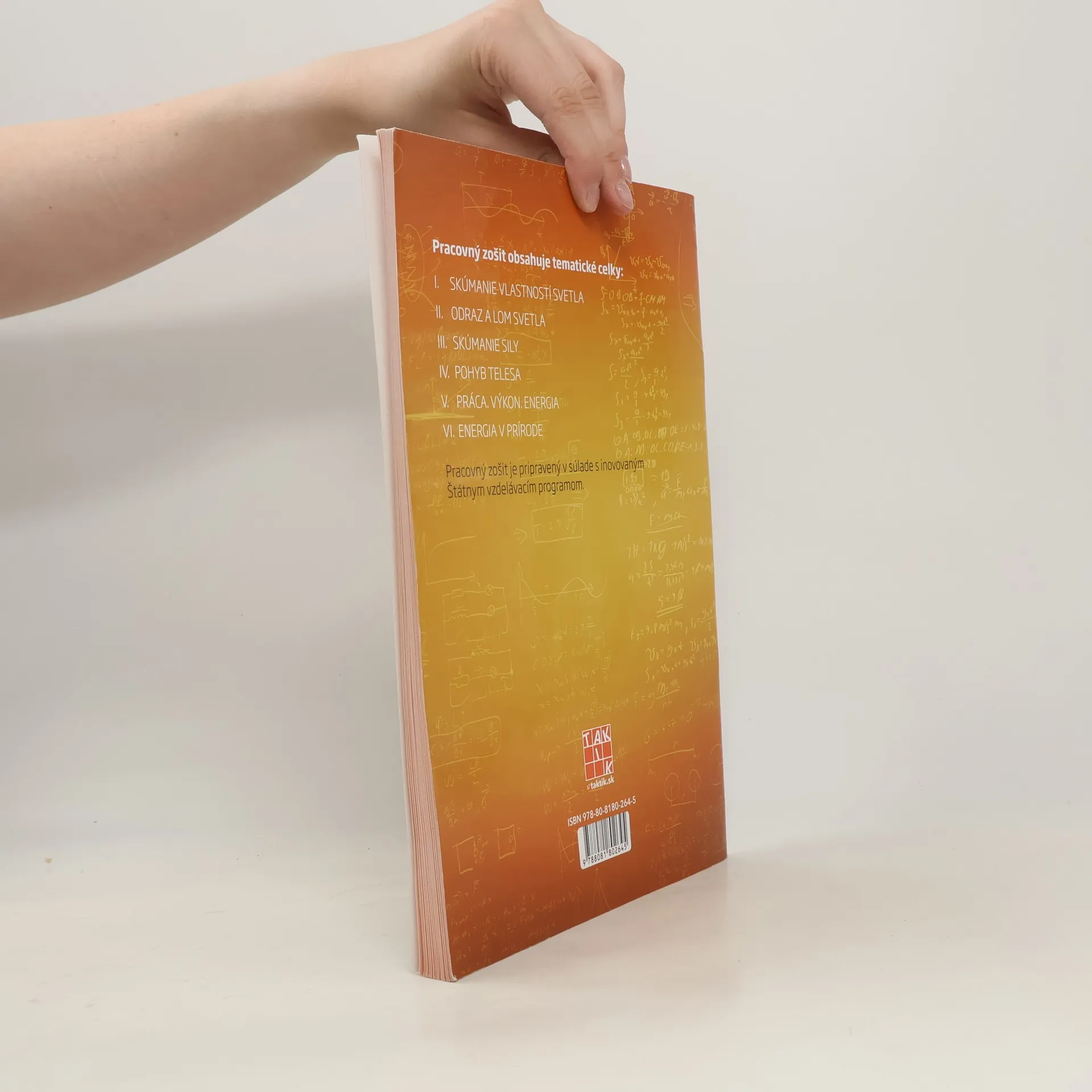 V Hravej fyzike 8 žiaci preskúmajú vlastnosti, zdroje a rozklad svetla. Naučia sa, aká farba vznikne skladaním zelenej a červenej či modrej a červenej. Zoznámia sa s farebným modelom RGB a CMYK aj dvojicou optických javov – odrazom a lomom svetla. Už budú vedieť, prečo je nápis AMBULANCIA na sanitkách napísaný sprava doľava. Spoznajú dva druhy šošoviek, popíšu hlavné časti oka a vyhľadajú, akú funkciu v oku má rohovka, sklovec či zrenica. Keďže telesá pôsobia na seba silou, žiaci sa dozvedia viac o jej účinkoch, ako aj o gravitačnej sile a hmotnosti telesa. Vypočítajú, akú hmotnosť im zobrazí „pozemská váha“ na Mesiaci a určia približnú polohu ťažiska telies ako vajíčko, prsteň či kengura. Podľa meteorologickej mapy znázorňujúcej atmosférický tlak určia tlak vzduchu nad Slovenskom i Francúzskom. Naučia sa všetko potrebné o pohybe telesa (jeho rýchlosti a dráhe) aj o polohovej a pohybovej energii. Taktiež spoznajú Zákon zachovania mechanickej energie. Záverečné strany patria prírodným energetickým zdrojom (Slnko – slnečné kolektory, energia morského prílivu, geotermálna energia, biomasa).
