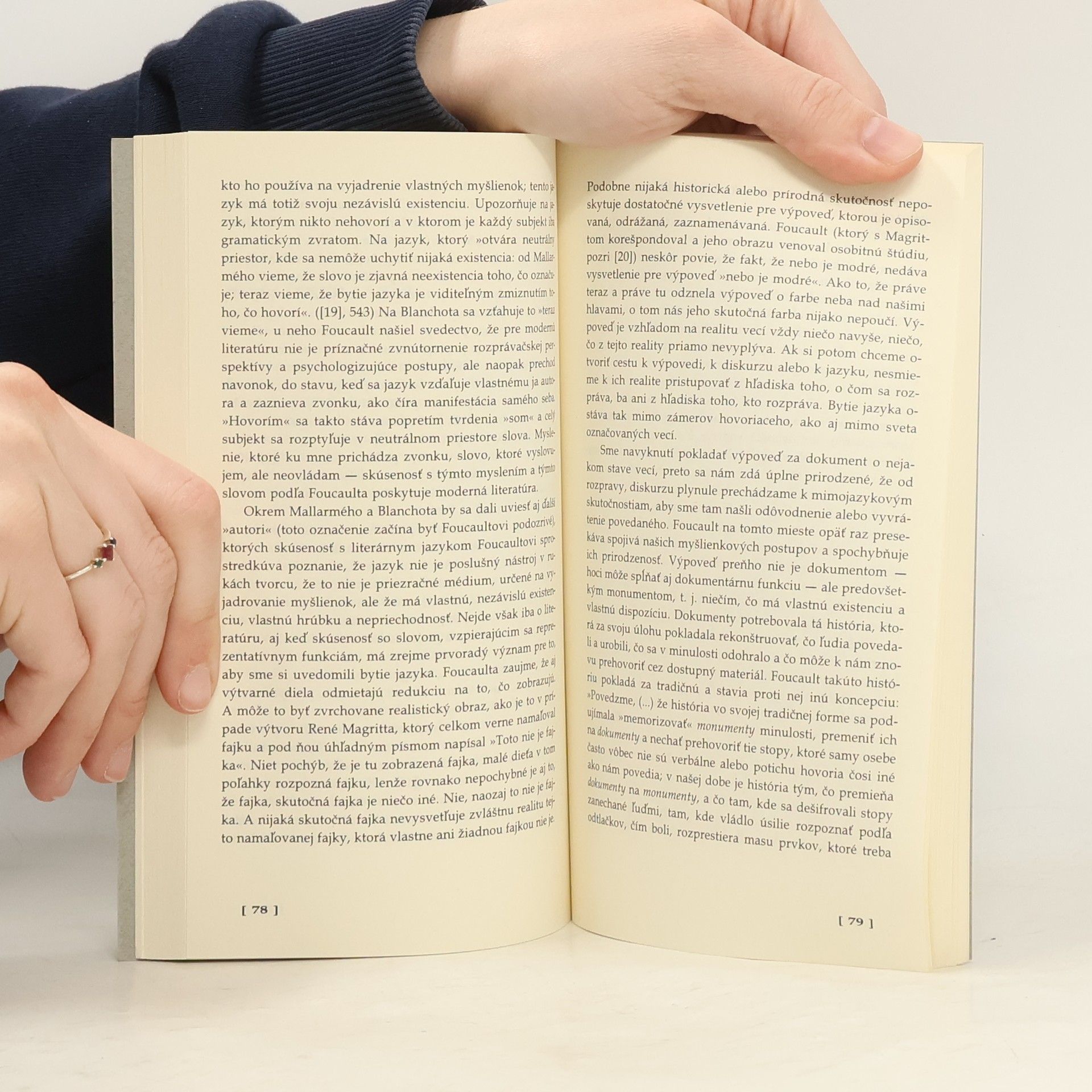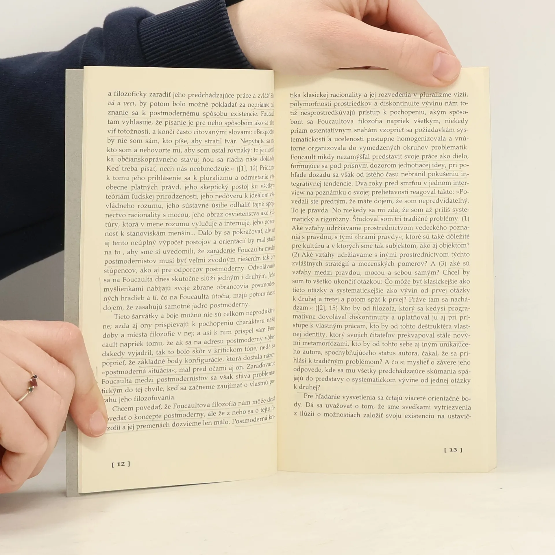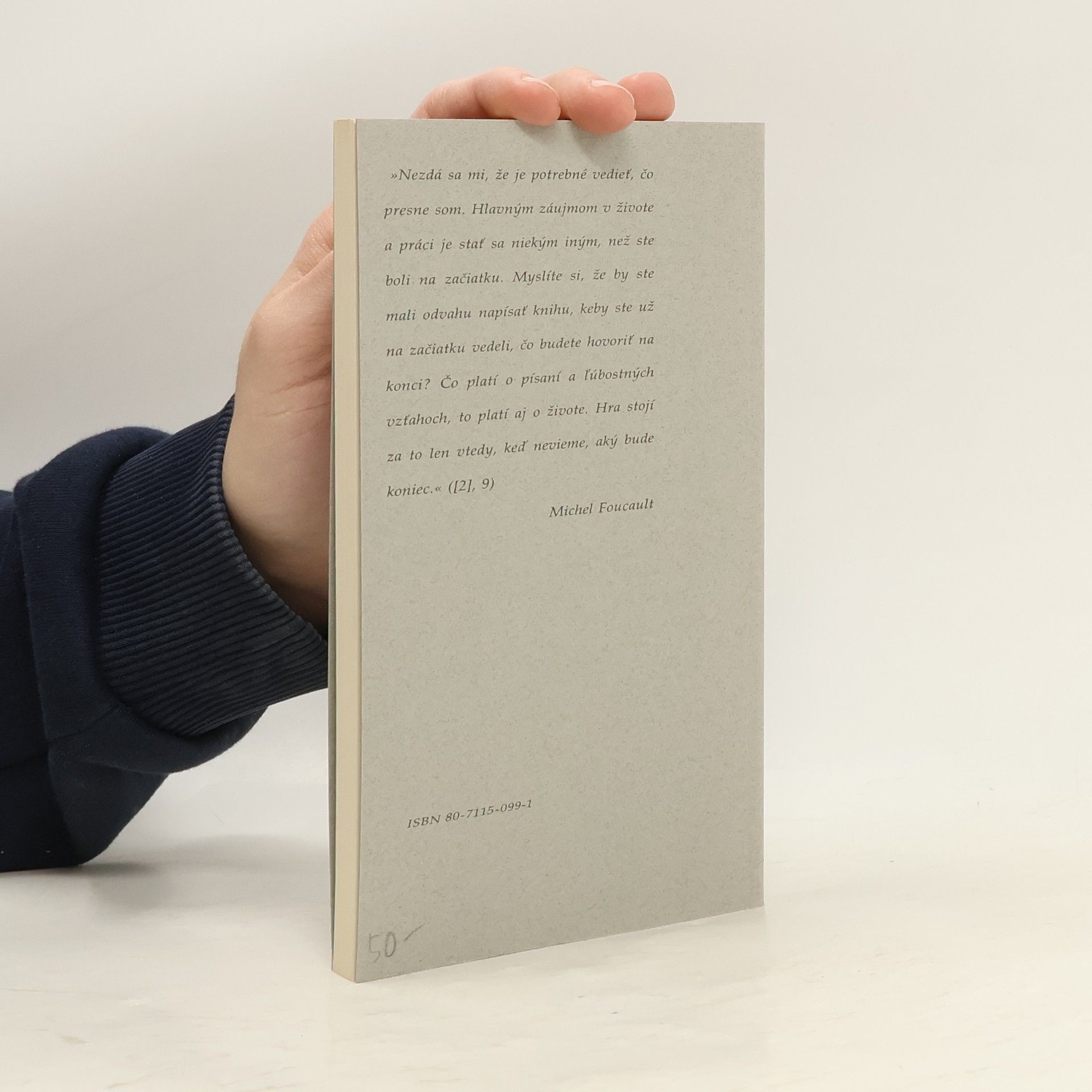 »Nezdá sa mi, ze je potřebné vedieť, čo presne som. Hlavným záujmom v živote a práci je stať sa niekým iným, než ste boli na začiatku. Myslíte si, že by ste mali odvahu napísať knihu, keby ste už na začiatku vedeli, čo budete hovořit' na konci? Čo platí o písaní a ľúbostných vzťalioch, to platí aj o živote. Hra stojí za to len vtedy, keď nevieme, aký bude koniec.« ([2], 9) Michel Foucault