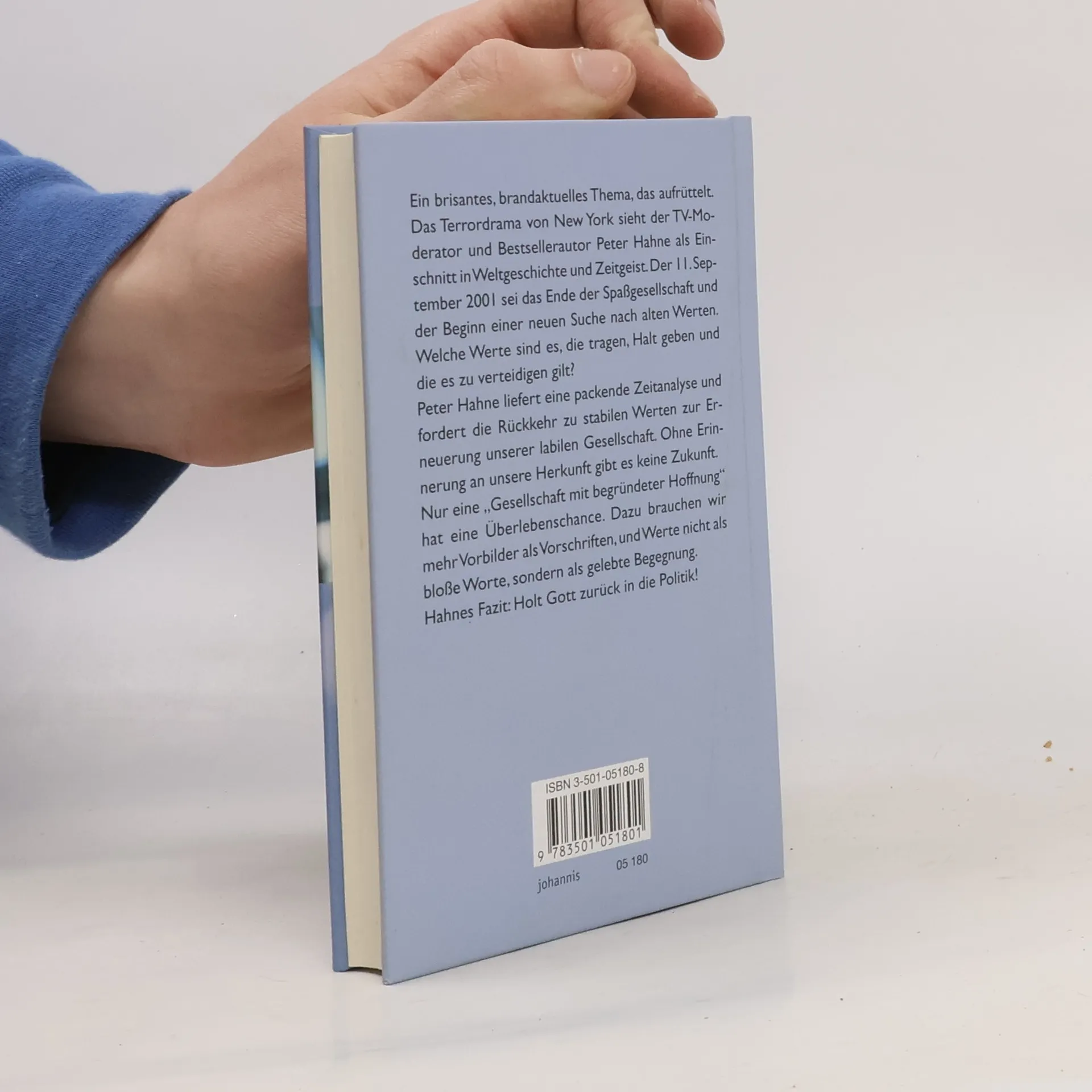 Ein brisantes, brandaktuelles Thema, das aufrüttelt. Endlich gibt es den viel beachteten Vortrag von Peter Hahne als Buch. Wo immer der Berliner Topjournalist in den letzten Monaten auf Einladung von Kirchen, Wirtschaftsverbänden oder Banken sprach: Die Hallen waren überfüllt, das Presseecho überschwänglich. Das Terrordrama von New York sieht Hahne als Einschnitt in Weltgeschichte und Zeitgeist. Der 11. September 2001 sei das Ende der Spaßgesellschaft und der Beginn einer neuen Suche nach alten Werten. Welche Werte sind es, die tragen, Halt geben und die es zu verteidigen gilt? Peter Hahne liefert eine packende Zeitanalyse und fordert die Rückkehr zu stabilen Werten zur Erneuerung unserer labilen Gesellschaft. Ohne Erinnerung an unsere christliche Herkunft gibt es keine Zukunft. Hahnes Fazit: Holt Gott zurück in die Politik!