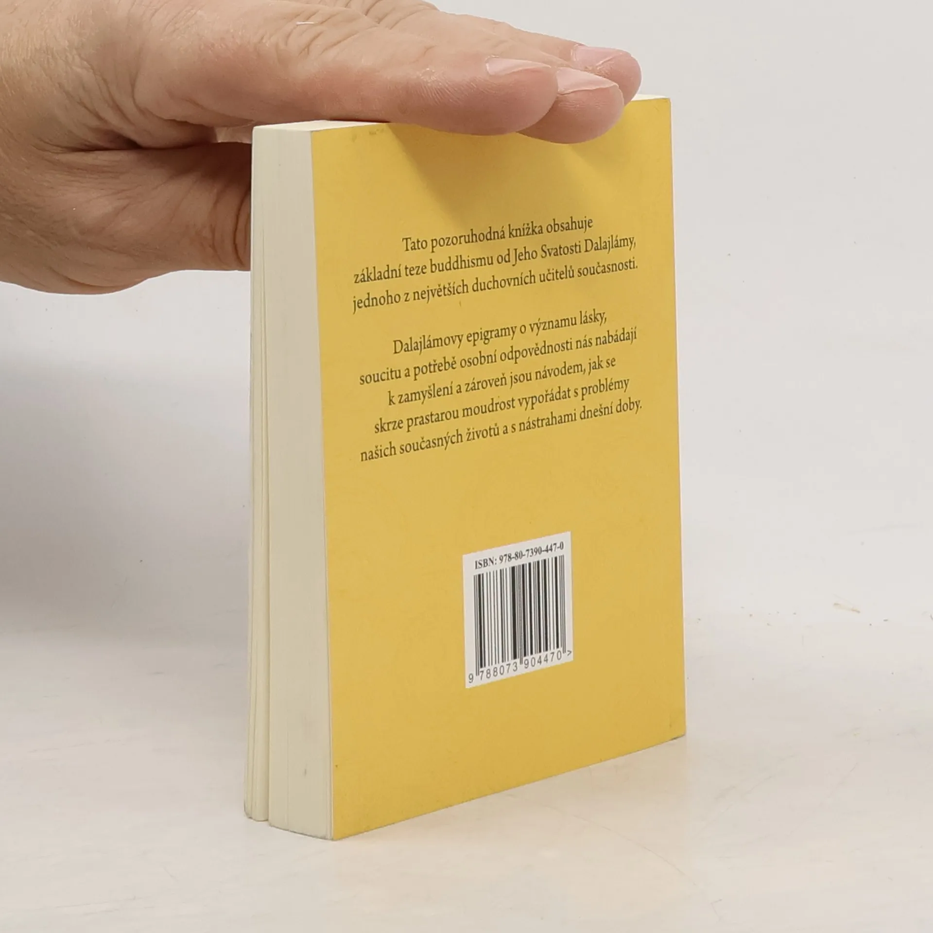 Tato pozoruhodná knížka obsahuje základní teze buddhismu od Jeho Svatosti dalajlámy, jednoho z největších duchovních učitelů současnosti. Dalajlámovy epigramy o významu lásky, soucitu a potřebě osobní odpovědnosti nás nabádají k zamyšlení a zároveň jsou návodem, jak se skrze prastarou moudrost vypořádat s problémy našich současných životů a s nástrahami dnešní doby.