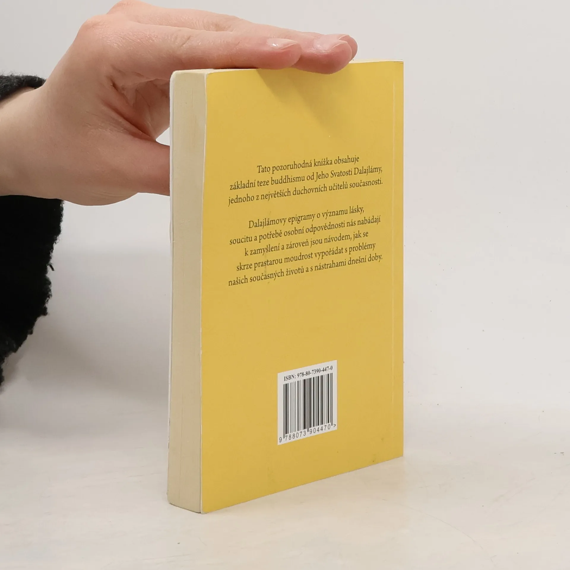 Tato pozoruhodná knížka obsahuje základní teze buddhismu od Jeho Svatosti dalajlámy, jednoho z největších duchovních učitelů současnosti. Dalajlámovy epigramy o významu lásky, soucitu a potřebě osobní odpovědnosti nás nabádají k zamyšlení a zároveň jsou návodem, jak se skrze prastarou moudrost vypořádat s problémy našich současných životů a s nástrahami dnešní doby.