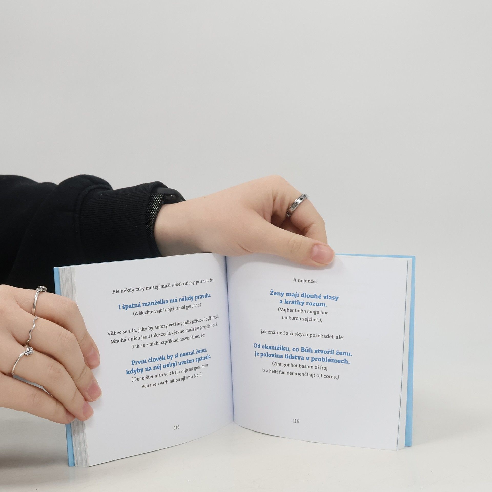Vztahy mezi muži a ženami jsou předmětem zájmu myslitelů, literátů i výtvarníků od nepaměti. Věnují se jim také lidová přísloví různých národů. Zvláštní půvab mají židovská lidová přísloví z východní Evropy tradovaná v jidiš – až do 20. století hlavním obcovacím jazyce židovského obyvatelstva od Německa na východ. Jde v podstatě o starou němčinu, obohacenou o hebrejskou a slovanskou slovní zásobu.