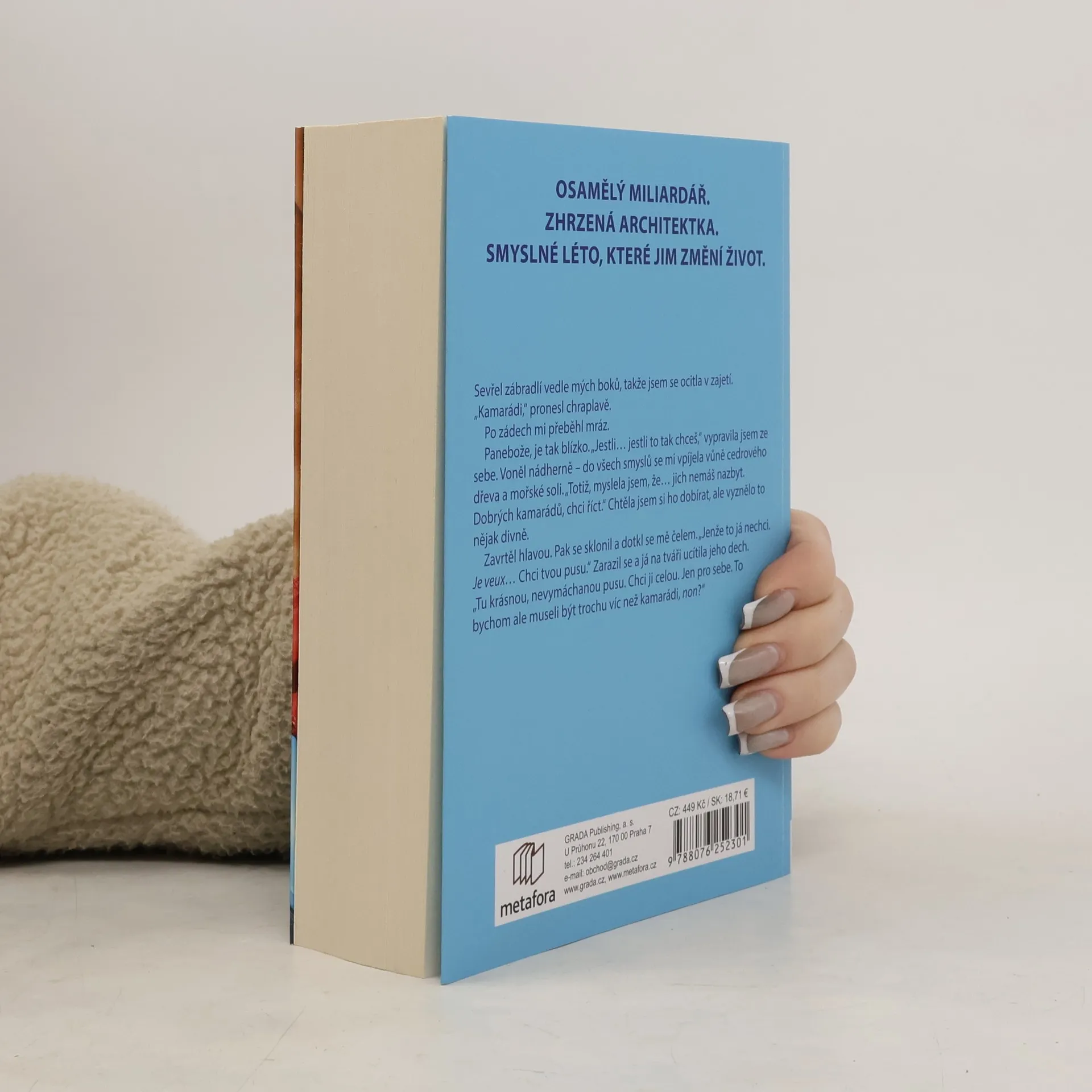 Mladé architektce Josephine se ze dne na den obrátí život vzhůru nohama: místo očekávaného povýšení v práci dává výpověď a ve slabé chvilce kývne na nabídku, aby odjela na francouzskou Riviéru hlídat dítě ovdovělému miliardáři. Po impulzivním odjezdu se však dostaví pochybnosti. Jak se má starat o dítě, když s tím nemá žádné zkušenosti? A proč jí nikdo neřekl, že bude o holčičku pečovat na jachtě – vždyť lodě odjakživa nesnáší! A hlavně – co si má počít, když ji její šéf neskutečně přitahuje, ale podle smlouvy si s ním v žádném případě nesmí nic začít? Úspěšný podnikatel Xavier, který nade vše miluje svou desetiletou dcerku Dauphine, si očividně s novou chůvou také neví rady. Dlouho si myslel, že do svého zlomeného srdce už žádnou ženu nevpustí. Proč by měl riskovat, že se opět hořce zklame, i když po ní prahne spalující touhou? Nebude lepší poslat ji co nejdřív pryč? Vychází v překladu Veroniky Láskové.