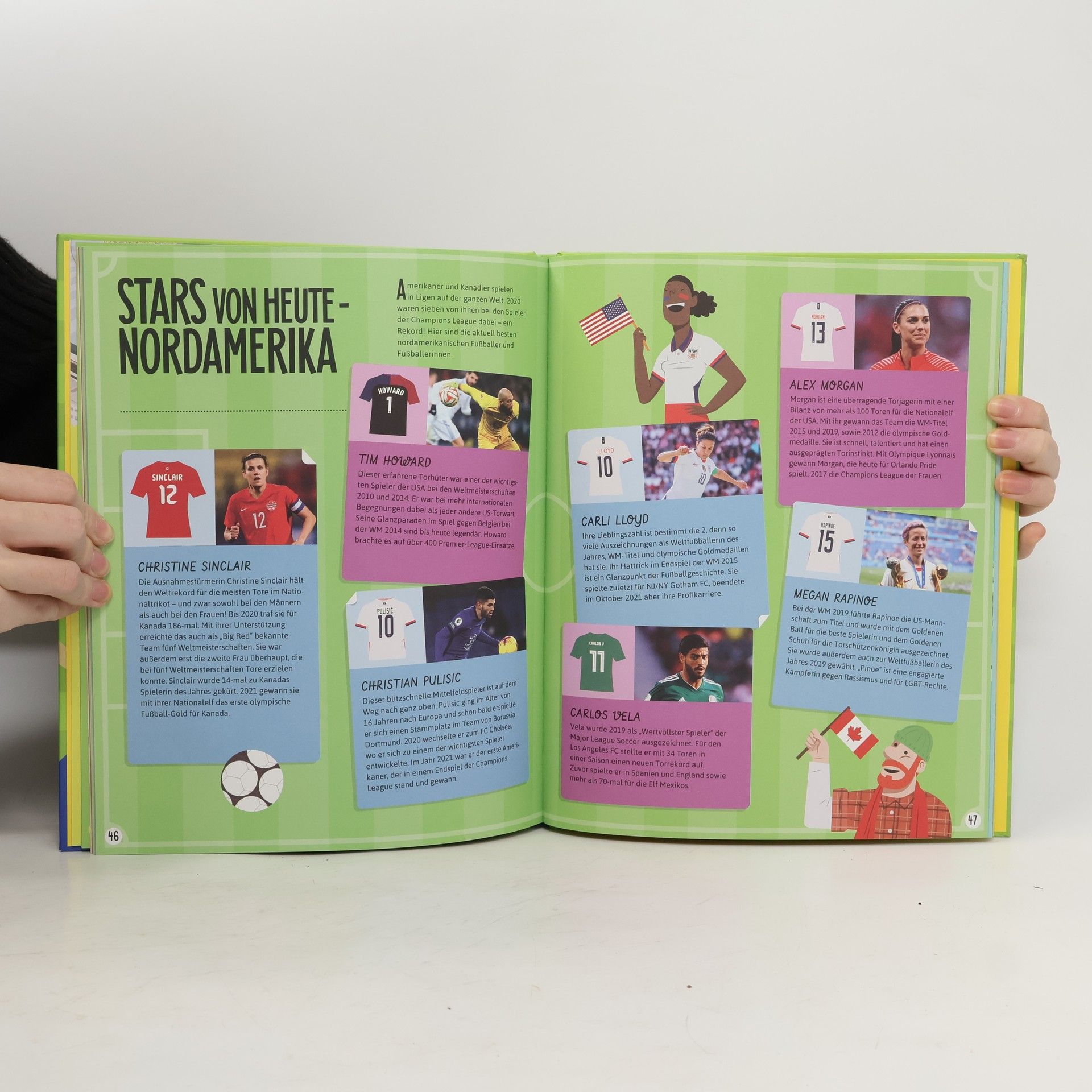 Eine spannende Reise rund um die Welt des Fußballs Wo fand schon überall eine Fußball-WM statt? Welche internationalen Fußballstars kommen aus Südamerika? Aus welchem Land stammt das erfolgreichste Frauenfußballteam des afrikanischen Kontinents? Entdecke die ganze Vielfalt der Fußballwelt und erfahre alles über nationale und internationale Wettbewerbe, erkunde die tollsten Stadien rund um den Globus und triff die besten Spielerinnen und Spieler der Welt. Eine spannende und witzige Reise rund um das rollende Leder über alle Kontinente! "Das Runde muss ins Eckige" ´lautet eine bekannte Fußballweisheit. Mit diesem Buch ist es tatsächlich gelungen, die ganze bunte und vielfältige Welt des Fußballs zwischen zwei rechteckigen Buchdeckeln unterzubringen. Die Reise führt quer über alle Kontinente zu fußballbegeisterten Menschen und begnadeten Spielerinnen und Spielern wie Megan Rapinoe, Lionel Messi oder Robert Lewandowski, aber auch zu wahren Legenden wie Pelé, Birgit Prinz oder Roger Milla. Nationale Ligen und kontinentale Pokale werden ebenso vorgestellt, wie Weltmeisterschaften und Weltstars. Fußballfans besuchen mit diesem Buch die tollsten Stadien der Welt, erkunden die Geschichte des runden Leders und lernen Varianten wie Motoball, Beachsoccer oder E-Rolli-Fußball kennen. Die Welt ist ein großes buntes Fußballfest und dieses Buch ist der passende Reiseführer dazu.