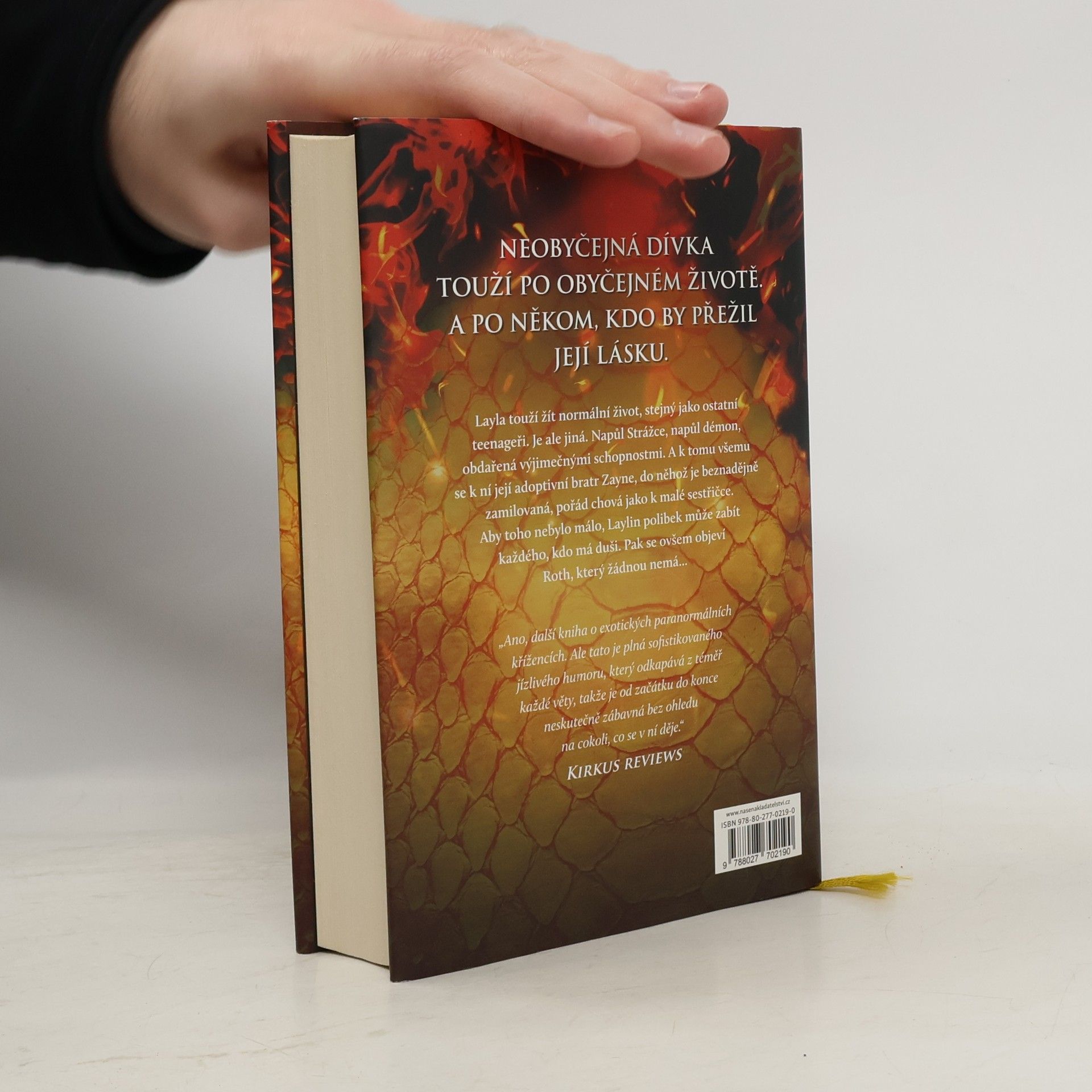 Jediný polibek může zabít Layla touží vést normální život teenagera. Chce trávit čas ve škole s kamarády a chodit na rande. Je ale jiná než ostatní a její celoživotní láska, adoptivní bratr Zayne, s ní jedná jako s malou sestřičkou. Zayne je součástí klanu Strážců, kteří byli shůry pověřeni lovem démonů a obranou lidstva. Layla je napůl Strážce, napůl démon a je obdařena výjimečnými schopnostmi. Její polibek má navíc smrtící účinky na každého, kdo má duši. Na scénu vstupuje Roth, výřečný a sebevědomý démon, který Laylu vyvádí z míry, protože zná její nejhlubší tajemství. Roth je šarmantní, pohledný a sexy. Pro Laylu je proto čím dál obtížnější držet si ho od těla a nevěřit jeho slovům, která do jejího života vnášejí pochyby. Démoni navíc nemají duši… Layla stojí před obtížnou volbou, která se jí může stát osudnou. Starosti s polibkem jdou stranou ve chvíli, kdy se na obzoru začne rýsovat povstání démonů, které může narušit rovnováhu života na Zemi. A Layla ví, že musí udělat vše pro to, aby povstání zabránila, a to i za cenu oběti a zrady vlastní rodiny. První díl série Dark Elements.