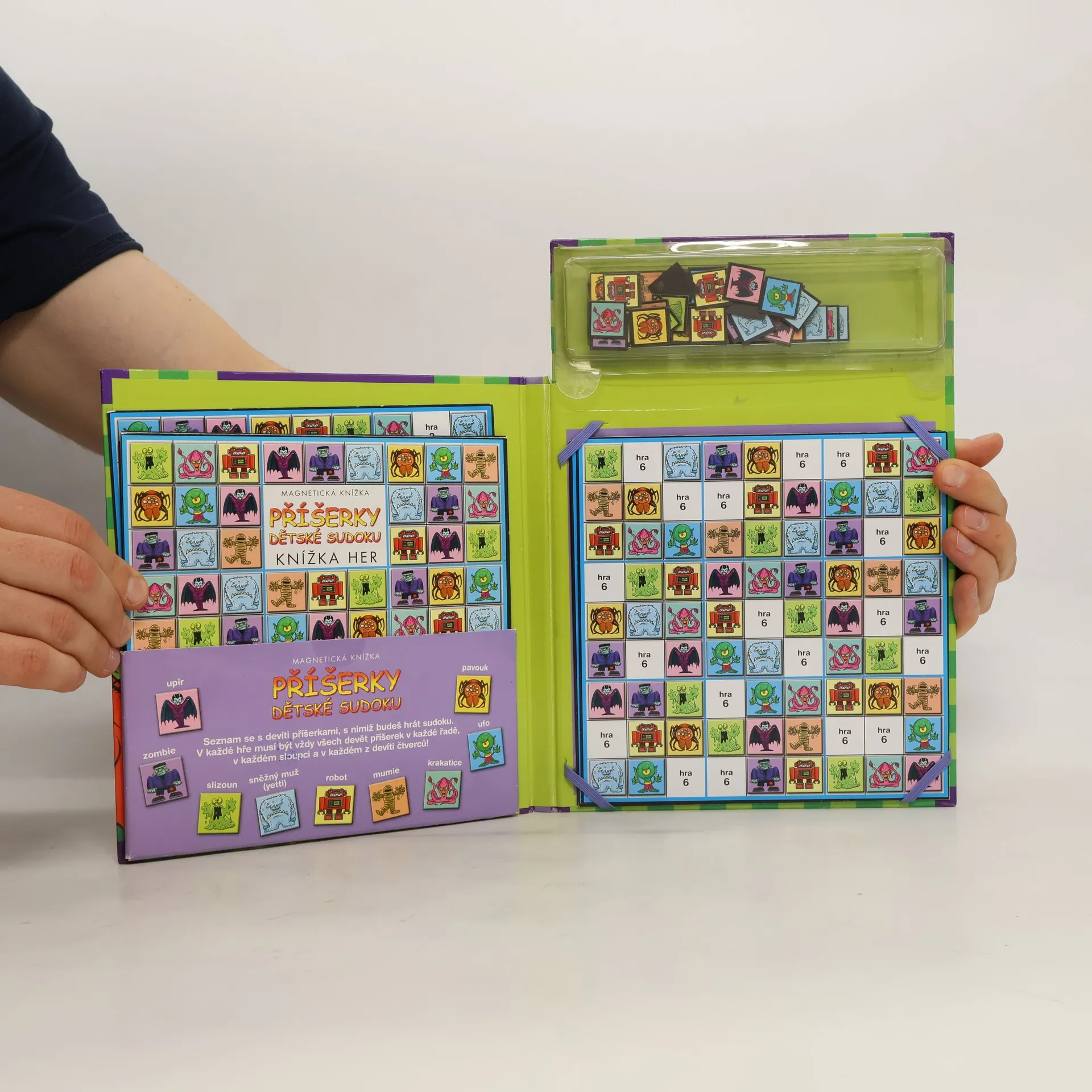Sudoku je skvělá zábava pro každého a magnetické obrázkové sudoku mohou hrát děti doslova kdekoli a kdykoli! Sudoku s barevnými obrázky příšerek je skvělé pro úplného začátečníka i pro zkušeného hráče! Kniha obsahuje: 48 her sudoku o dvou úrovních obtížnosti a magnetické obrázkové dílky.