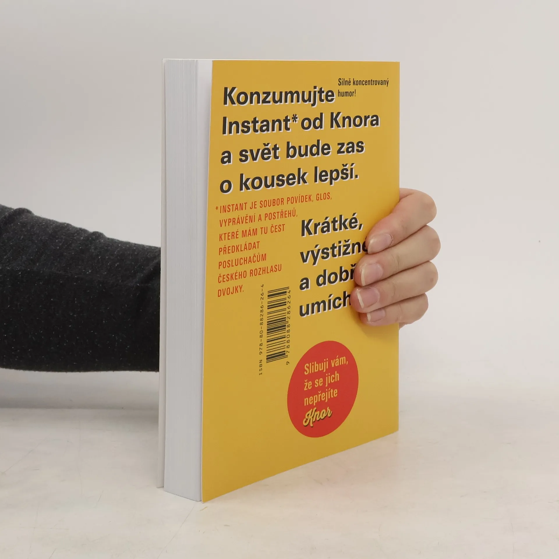 Instant je soubor povídek, glos, vyprávění a postřehů, které mám tu čest předkládat posluchačům prostřednictvím vysílání Českého rozhlasu. Na Dvojce jsou tato díla k poslechu, ale v knize je můžete číst doma, ve vlaku, autobuse i v autě, pokud neřídíte. Jsou výtečné i jako čtivo na dovolenou. Pobaví vás na pláži rybníka, jezera i moře. Dají se číst na horách i v nížinách, pod stanem i v luxusním hotelu. Jsou krátké, výstižné a dobře umíchané. Humor je v nich tak silně koncentrovaný, že si je rádi budete číst znova a znova. Slibuji vám, že se jich nepřejíte. Konzumujte Instant od Knora a svět bude zas o kousek lepší. Dobrou chuť k životu vám přeje Miloš Knor