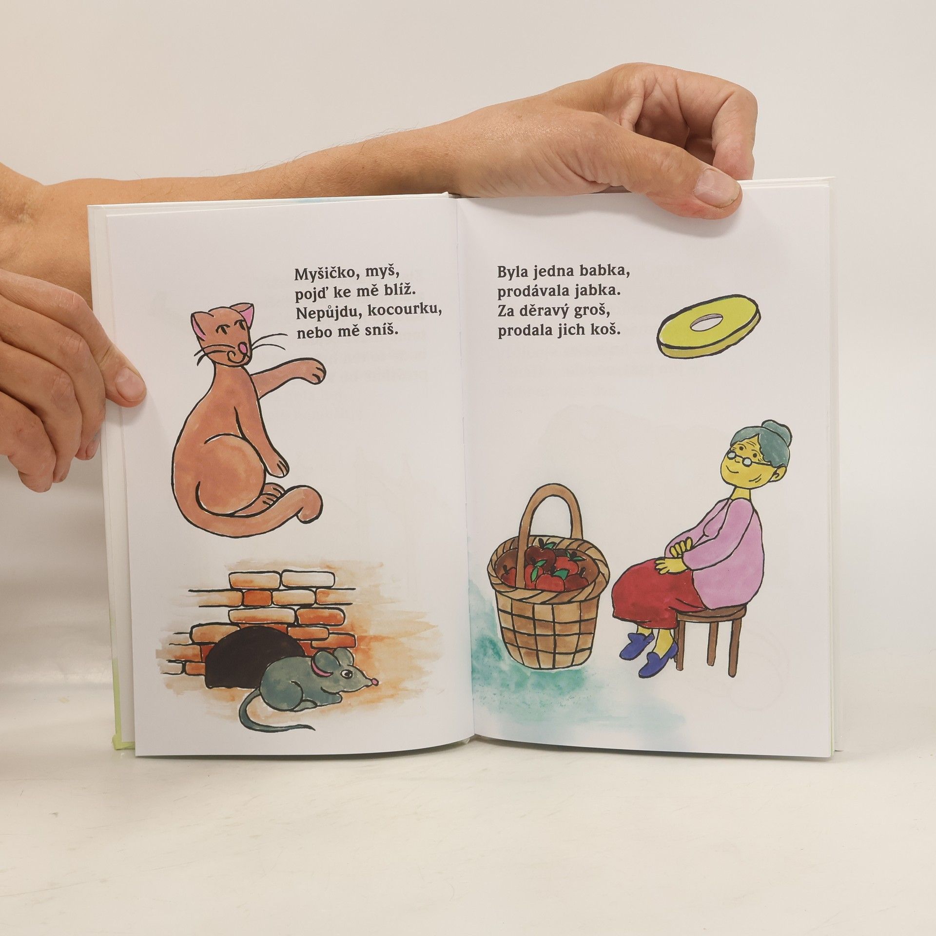 V naší knížce najdete 44 známých českých říkadel. Nechybí v ní ani taková, jako Kočka leze dírou; Paci, paci pacičky; Utíke, Káčo utíkej, Prší, prší, ale najdete zde i ta méně známá. Každé říkadlo doprovazí jednoduchý barevný obrázek.